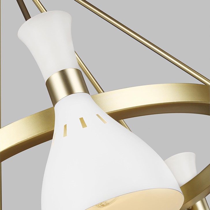 Люстра Elstead Lighting FE-JOAN5-MW. Геометрические линии. Культовые плафоны в форме песочных часов с узкими перфорированными отверстиями для мягкого рассеянного света. Основание в отделках - Белый, Латунь. Подходит для освещения гостинной, кухни, спальни, столовой.