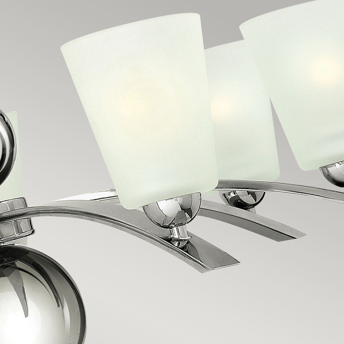 Люстра Elstead Lighting HK-ZELDA7-PN. Увеличивающиеся в размере шары и матовые абажуры, образуют элегантную органичную центральную колонну и придают светильнику экстравагантный силуэт в стиле середины прошлого века. Основание в отделке - Никель. Можно использовать при освещении гостинной, кухни, спальни, столовой. Цепь 1500 мм в комплекте