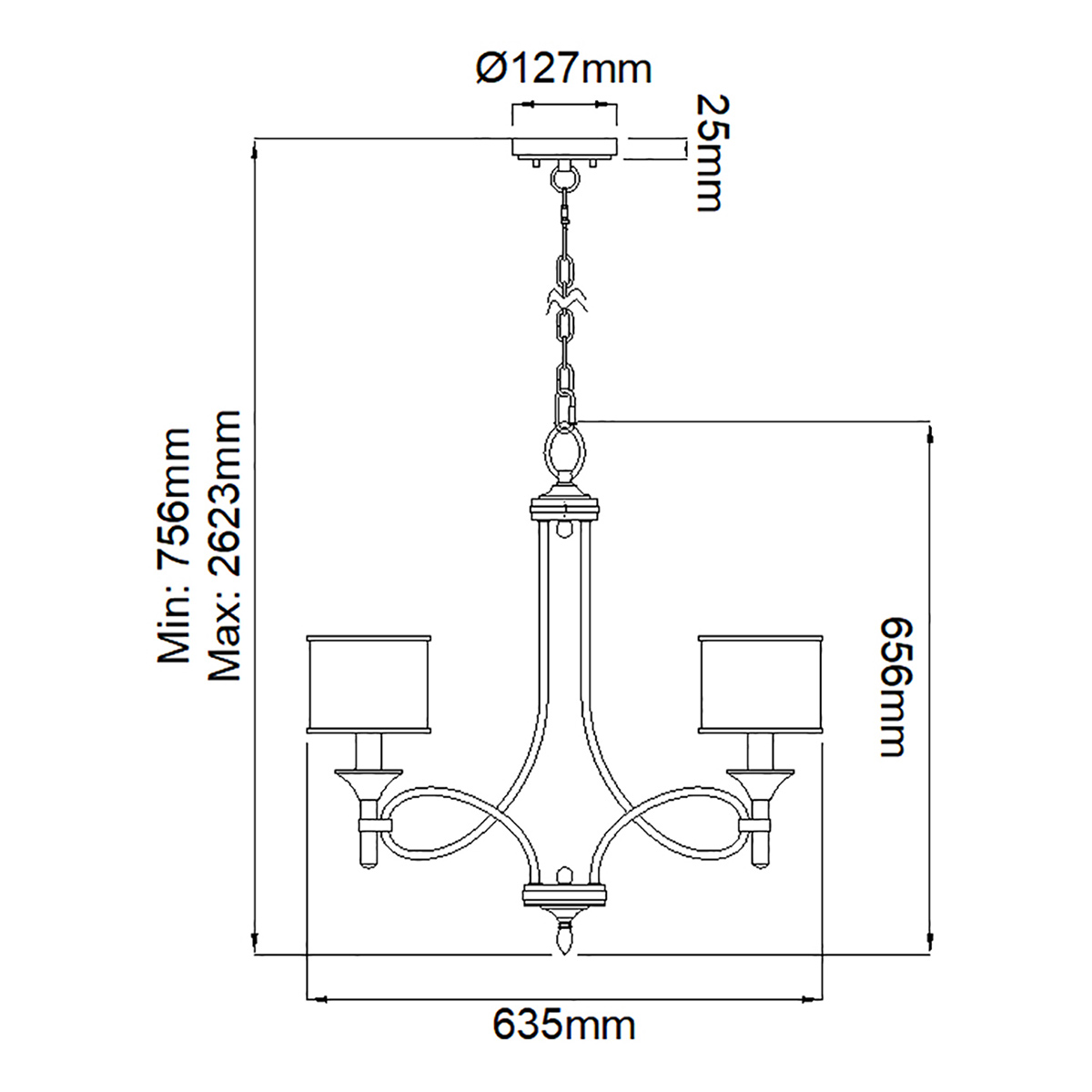 Люстра Elstead Lighting KL-LACEY5-MB. Придется по душе каждому. Противоречивое очарование старинного стиля и современных материалов. Мощное, без лишних украшений, основание и изящные изгибы. Авангардные двойные абажуры, внешняя часть которых из органзы, а внутренняя - из матового стекла. Основание в отделке - Бронза. Идеально подойдет для освещения гостинной, кухни, спальни, столовой. Цепь 1829 мм в комплекте