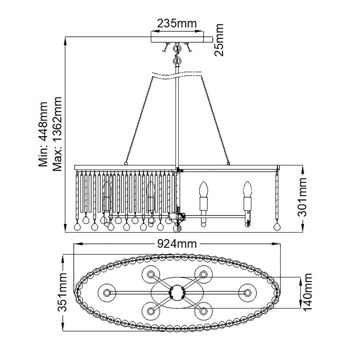 Люстра Elstead Lighting KL-PIPER-ISLE-PC. Соединяет в себе современность и женственность, благодаря акцентам из изящных, стеклянных бусин. Светильник изготавливается из чередующихся деталей, выполненных из прозрачного стекла, и металлических стержней. Благодаря этому он привлекает внимание и становится центром любого современного помещения. Основание выполнено в цвете - Полированный хром. Стержни 2х152 мм и 2х305 мм в комплекте