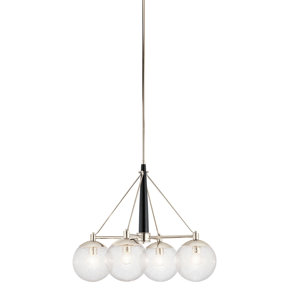 Люстра Elstead Lighting QN-MARILYN4. Современный стиль с ретро-акцентом. Универсальный дизайн для современных и классических интерьеров. Прозрачные плафоны в форме шара из фактурного стекла. Основание в цвете - Полированный никель. Поставляется со стержнями 2х152 мм и 2х305 мм