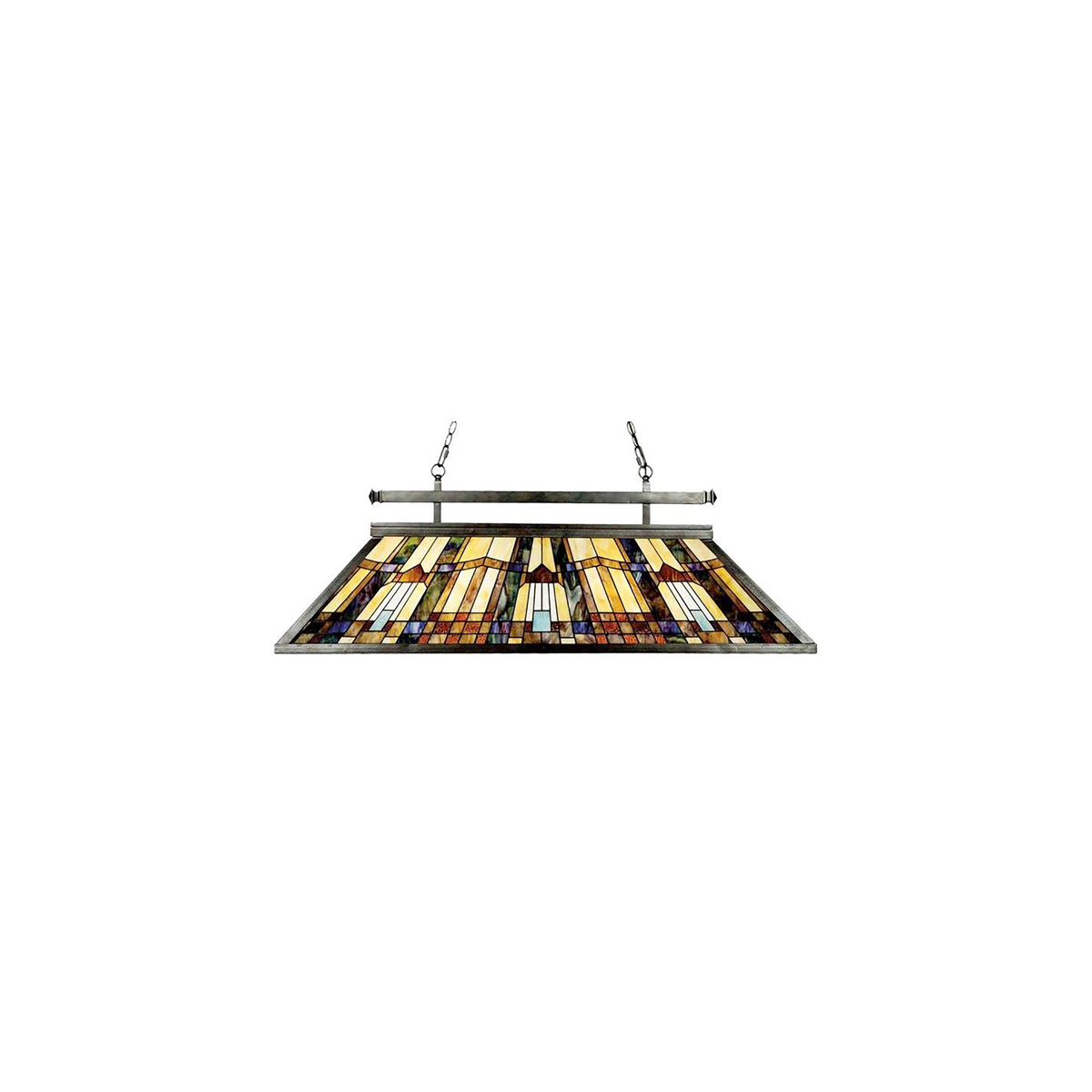 Люстра Elstead Lighting QZ-INGLENOOK-ISLE. Классические геометрические формы, характерные для стиля arts&crafts, воплощены в светильнике, украшенному плафоном из арт стекла зеленого, синего, янтарного и сливочного оттенков. Стиль, хранящий традиции ремесленного мастерства, и внимание к деталям. Идеально подойдет для освещения гостинной, кухни, спальни, столовой.