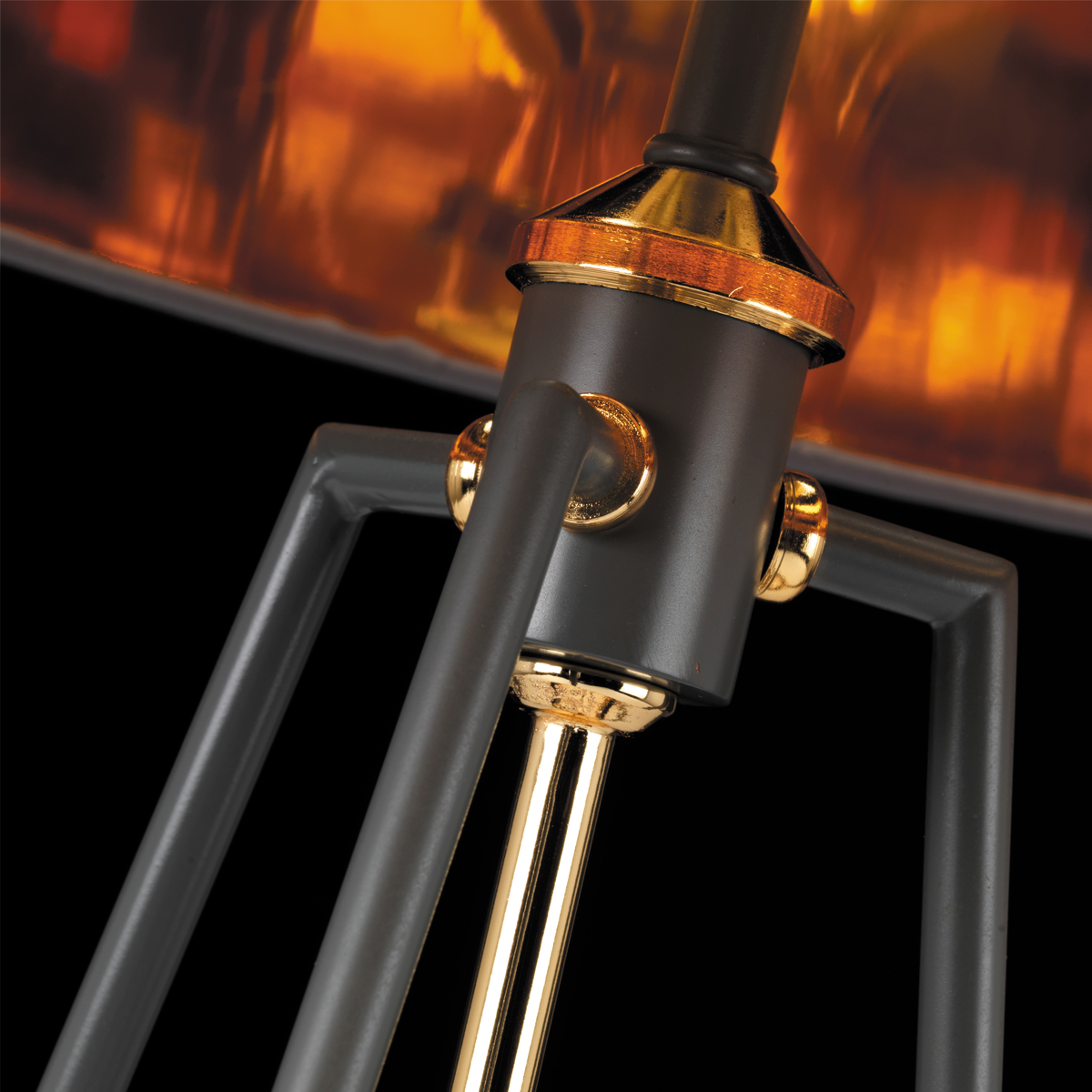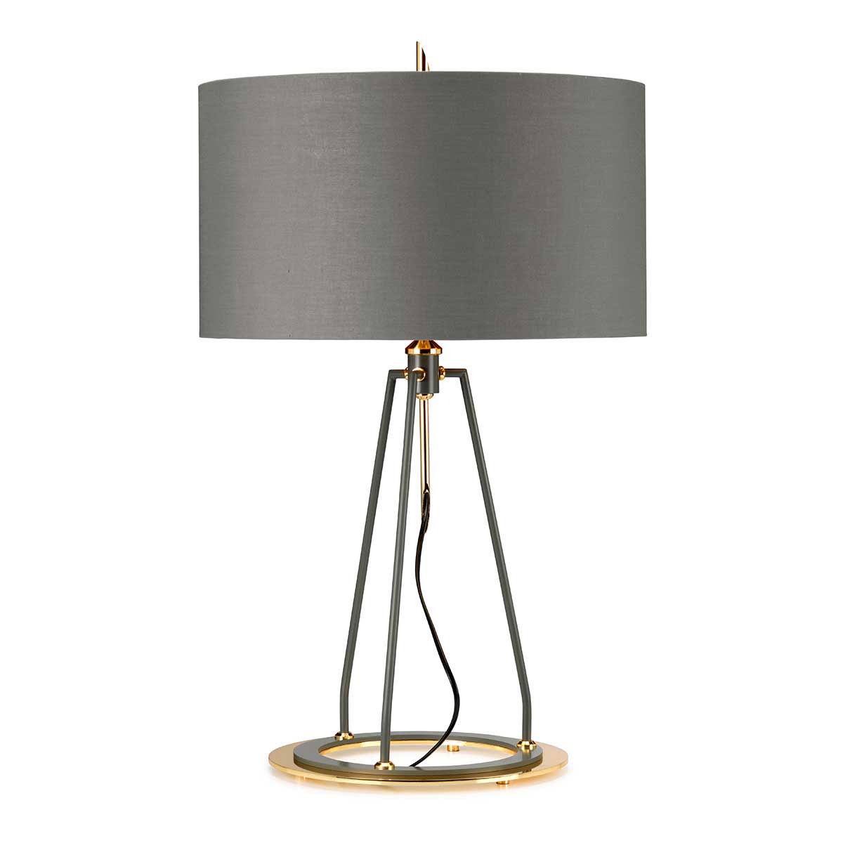 Настольная лампа Elstead Lighting FERRARA-TL-GPG. Едва заметные ножки основания создают эффект легкости и полета конструкции над столом. Светильник дополнен серым абажуром из поликоттона. Внутри абажур золотого цвета с металлическим эффектом. Основание в цвете - Темное полированное золото. Можно использовать при освещении гостинной, кабинета, спальни.