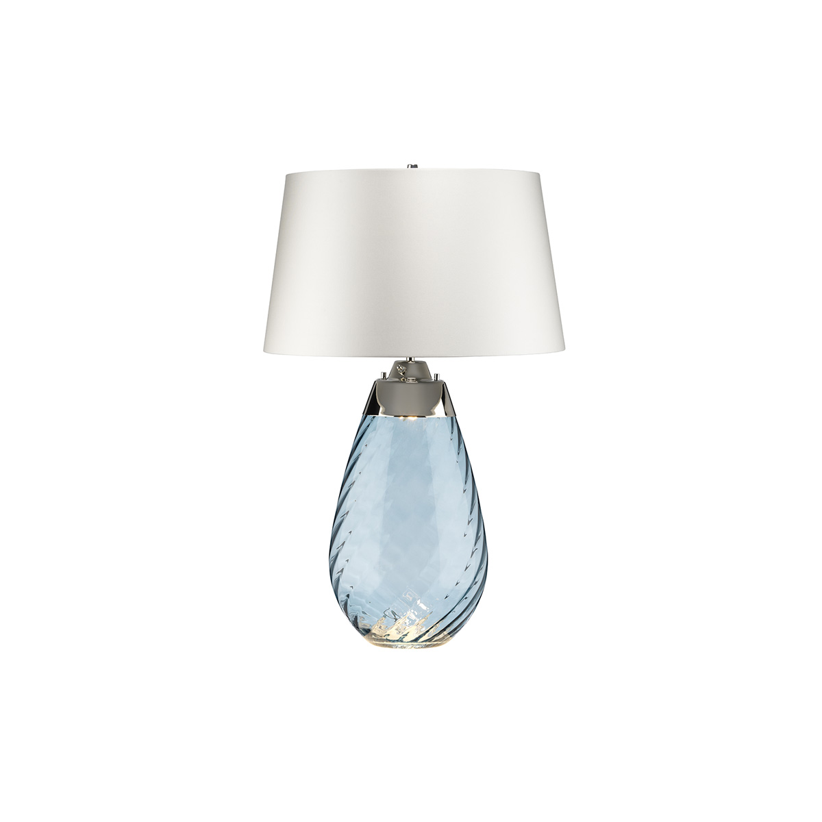 Настольная лампа Elstead Lighting LENA-TL-L-BLUE-OWSS из коллекции Lena Large. Изящные изгибы дутого стекла и металлические детали, создают поразительный визуальный эффект. Модель снабжена системой двойной подсветки и 4-позиционным переключателем для освещения как абажура, так и основания. Абажур изготовлен в великобритании из полу матовой шёлковой ткани, с матовой серебристой ламинацией изнутри. Основание выполнено в цветах - Хром, Синий, Прозрачное стекло. Подходит для освещения гостинной, кабинета, спальни.