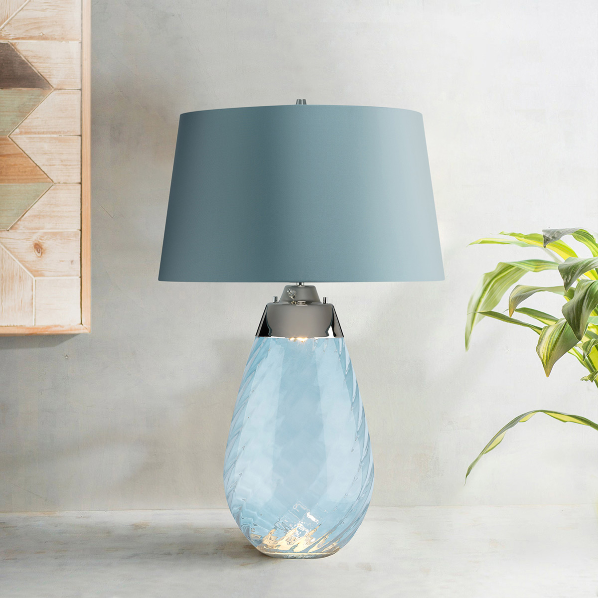 Настольная лампа Elstead Lighting LENA-TL-L-BLUE из коллекции Lena Large. Изящные изгибы дутого стекла и металлические детали, создают поразительный визуальный эффект. Модель снабжена системой двойной подсветки и 4-позиционным переключателем для освещения как абажура, так и основания. Абажур изготовлен в великобритании из полу матовой шёлковой ткани, с матовой серебристой ламинацией изнутри. Основание в цветах - Синий, Голубое стекло. Можно использовать при освещении гостинной, кабинета, спальни.