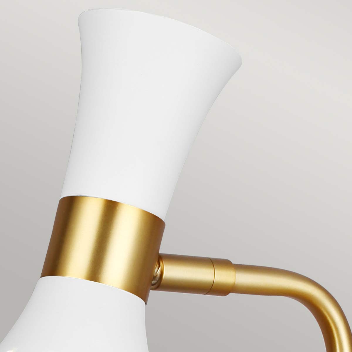 Настольная лампа Elstead Lighting FE-JOAN-TL-MW. Геометрические линии. Культовый плафон в форме песочных часов с узкими перфорированными отверстиями для мягкого рассеянного света. Основание выполнено в отделках - Белый, Латунь. Подходит для освещения гостинной, кабинета, спальни.