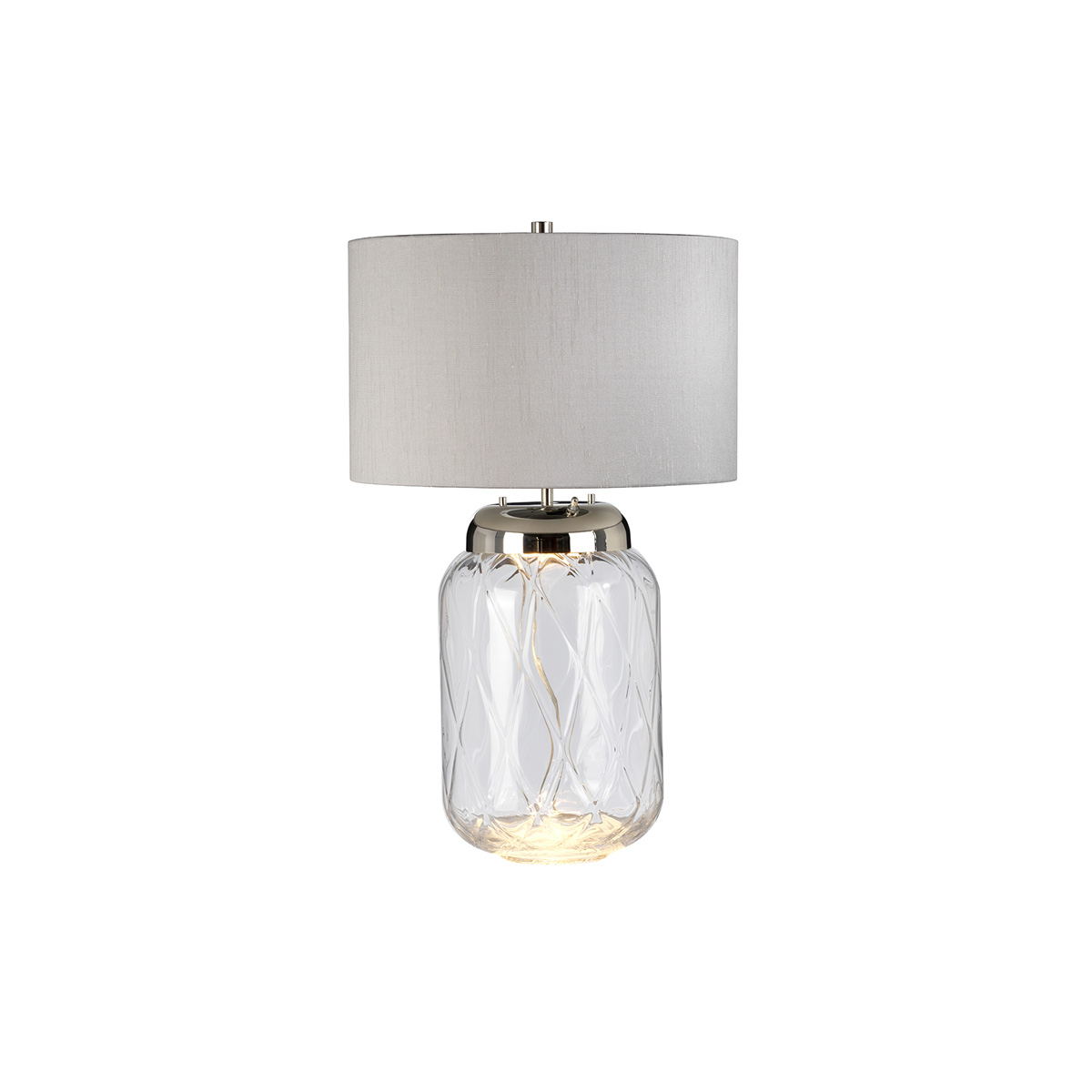 Настольная лампа Elstead Lighting QN-SOLA-TL-L. 4-позиционный переключатель для независимого включения подсветки основания и абажура. Элегантная основа из выдувного стекла с алмазной огранкой. В комплекте абажур из искусственного шёлка. Основание выполнено в цветах - Полированный никель, Прозрачное стекло. Идеально подойдет для освещения гостинной, кабинета, спальни.