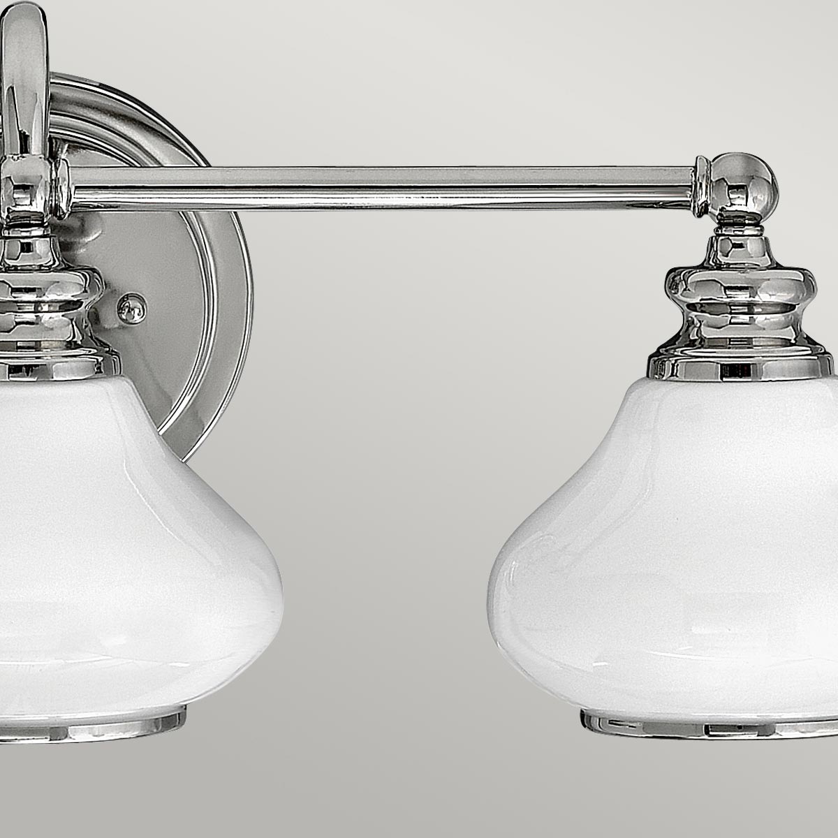 Бра Elstead Lighting HK-AINSLEY3-BATH. Традиционный силуэт очаровывает своеобразными деталями, такими как перевернутые ретро-чаши плафонов. Штрихом отделки, акцентирующим внимание на плафонах из многослойного опалового стекла, является элегантное окаймляющее кольцо, а привлекательность светильника усиливается светодиодными лампочками. Основание в отделке - Хром. Идеально подойдет для освещения ванной комнаты, степень защиты IP44.