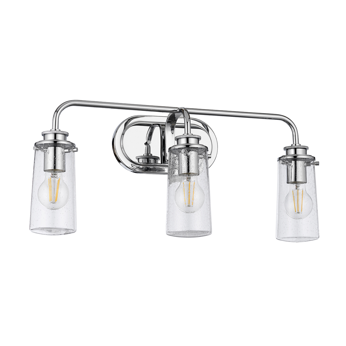 Бра Elstead Lighting QN-BRAELYN3-PC. Винтажный индустриальный дизайн. Прозрачные плафоны в форме старинной банки из фактурного стекла. Рекомендуется использовать лампы в винтажном стиле. Основание выполнено в цвете - Хром. Подходит для освещения ванной комнаты, степень защиты IP44.