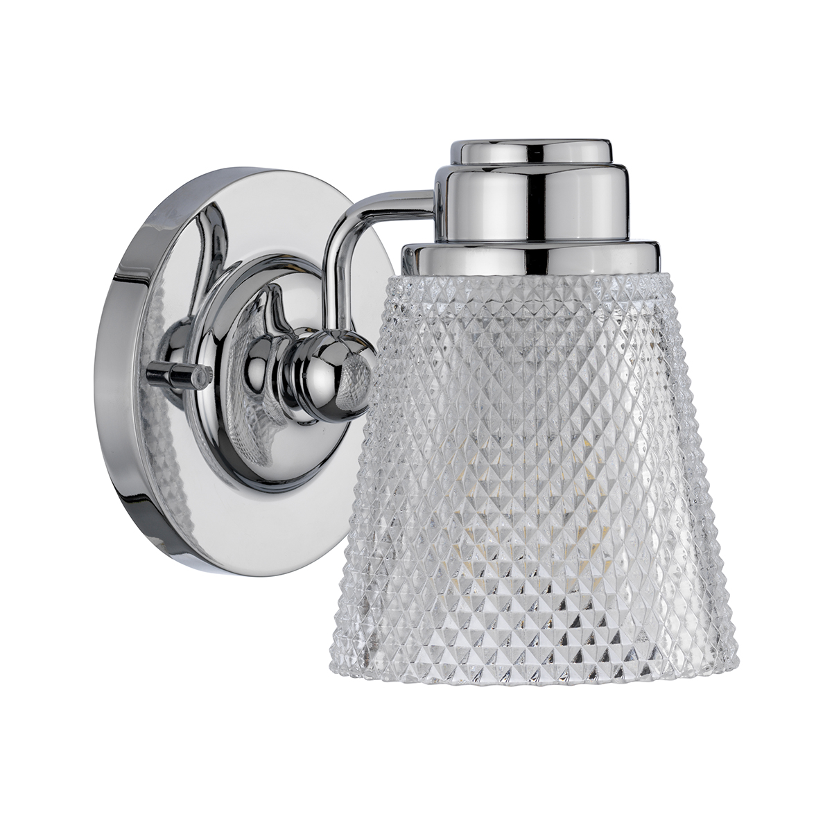 Бра Elstead Lighting QN-HUDSON1-BATH. Вдохновение классическим дизайном. Плафон из прозрачного гранёного стекла. Можно устанавливать плафоном вверх или вниз. Класс защиты ip44. Основание выполнено в цвете - Полированный хром. Можно использовать при освещении ванной комнаты.