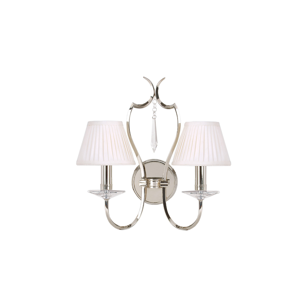 Бра Elstead Lighting PM2-PN из коллекции Pimlico. Авторский светильник с изящными рожками, необычно изгибающимися на концах. В производстве в основном используется латунь. Стеклянные элементы сделаны из ограненного стекла высочайшего качества. Дополнительно можно заказать с абажурами ручной работы ls162 (в комплект не входят). Основание в цвете - Никель. Можно использовать при освещении гостинной, кабинета, кухни, прихожей, спальни, столовой.