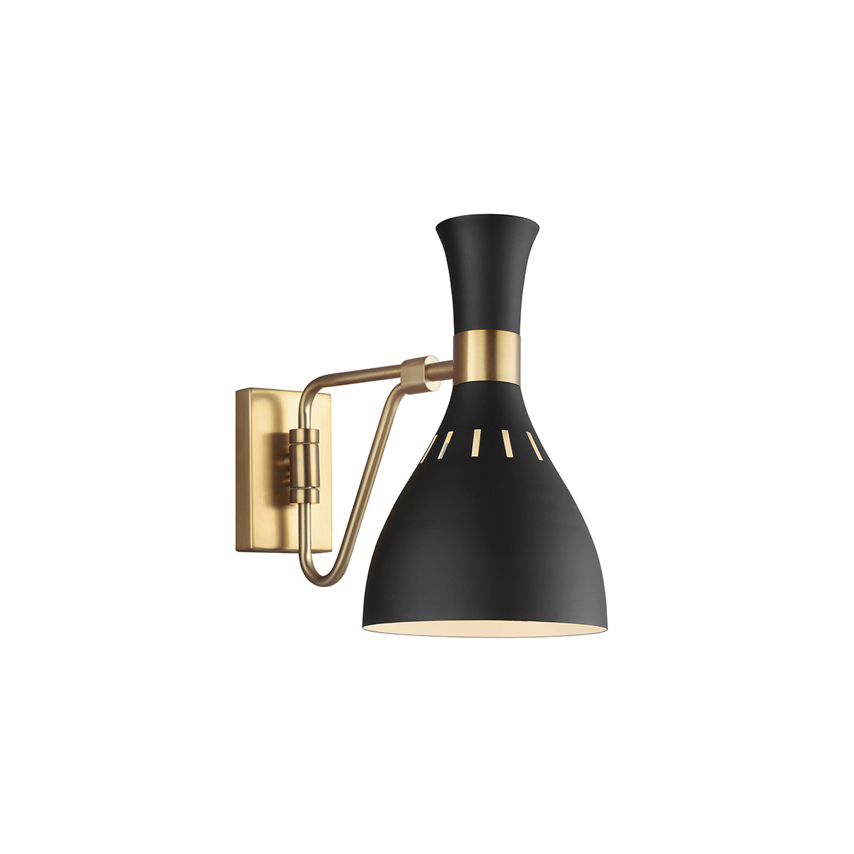 Бра Elstead Lighting FE-JOAN1-MB. Геометрические линии. Культовый плафон в форме песочных часов с узкими перфорированными отверстиями для мягкого рассеянного света. Основание выполнено в цветах - Черный, Латунь. Можно использовать при освещении гостинной, кабинета, кухни, прихожей, спальни, столовой.