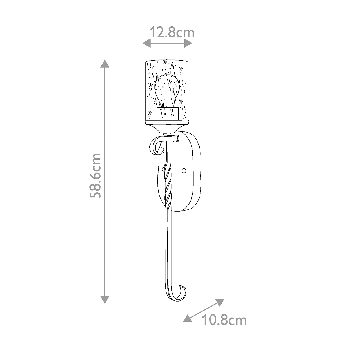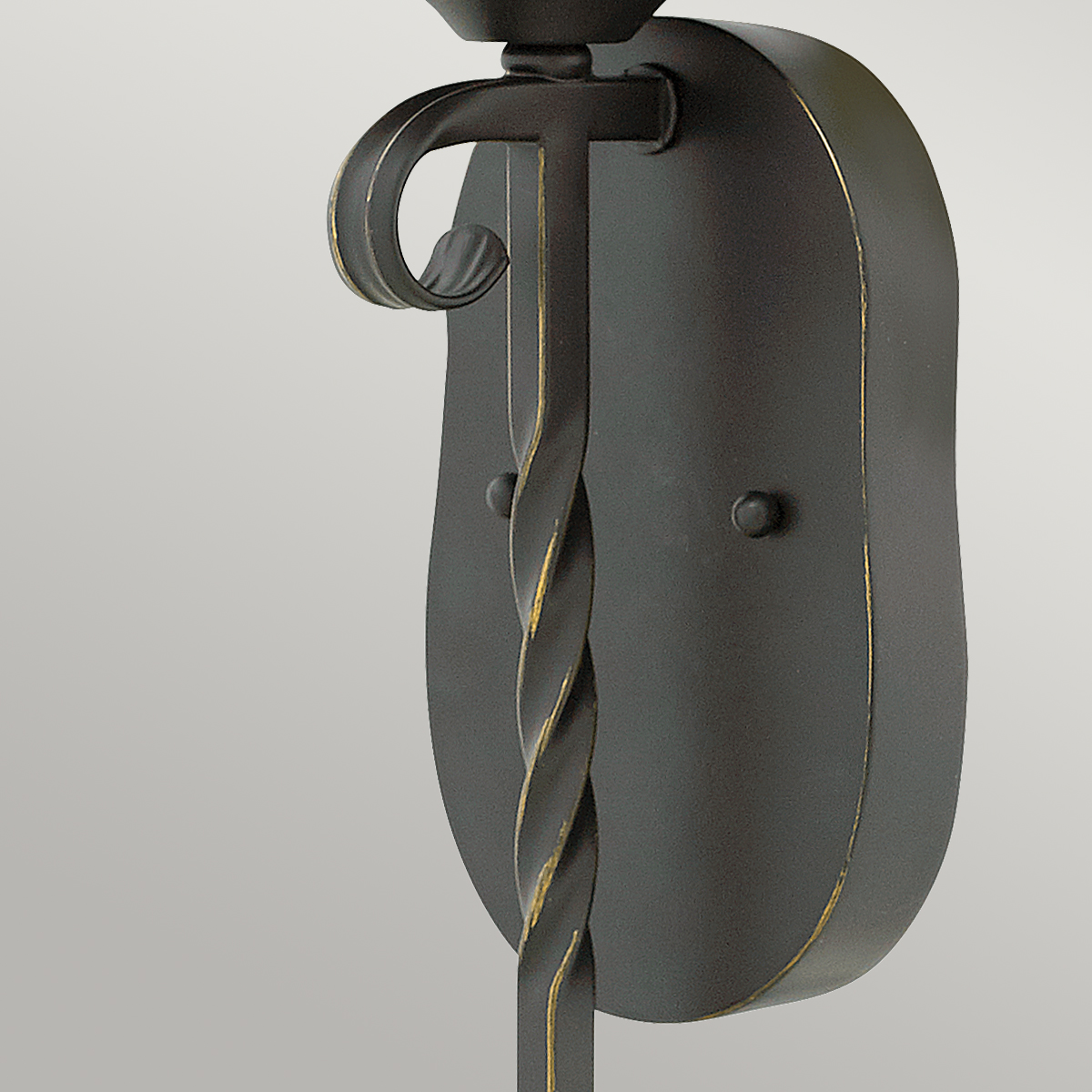 Бра Elstead Lighting HK-CASA1. Стиль рустикальный шик. Витое кованое железо, орнамент в виде завитков ручной ковки. Прозрачное фактурное стекло. Основание выполнено в цвете - Черный. Подходит для освещения гостинной, кабинета, кухни, прихожей, спальни, столовой.