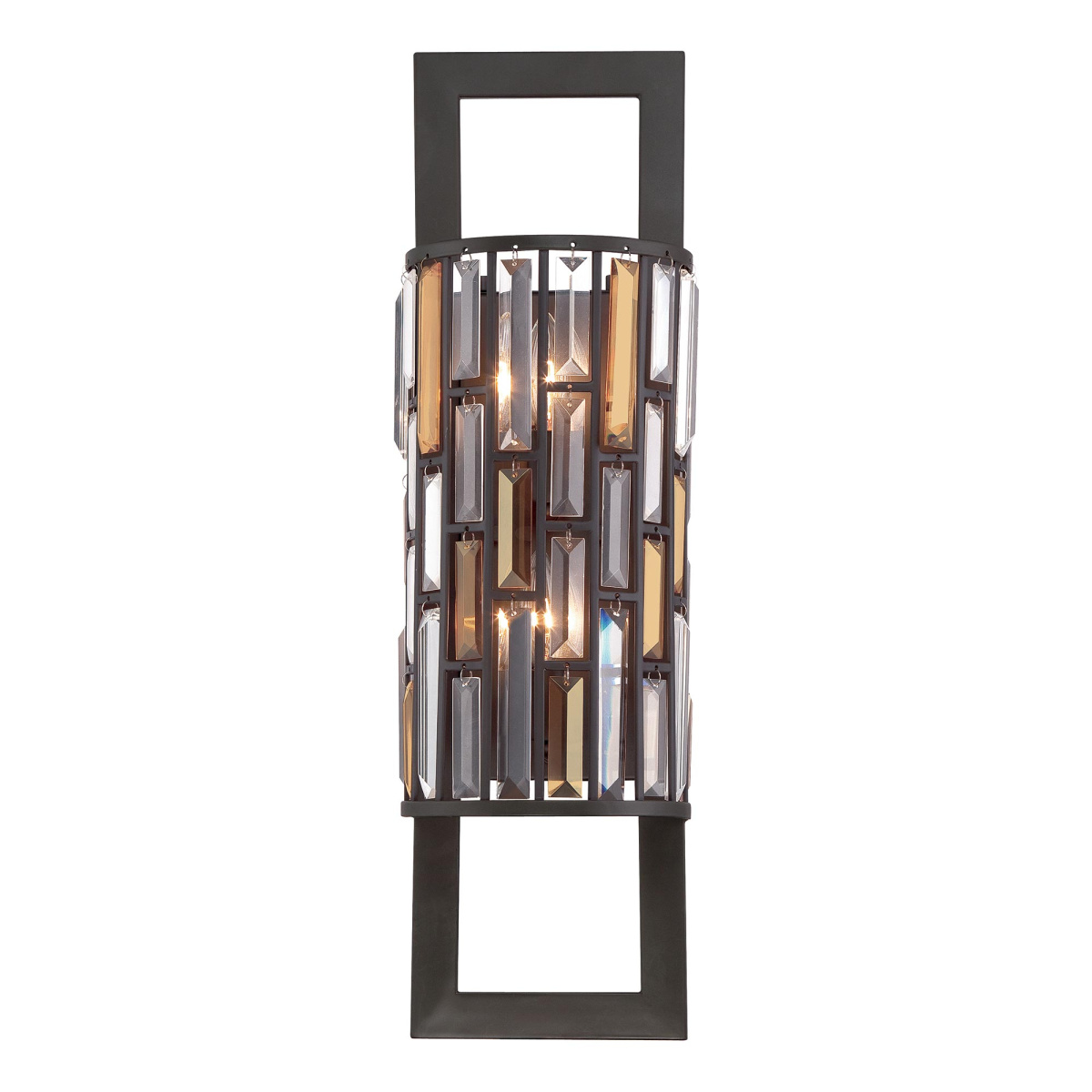 Бра Elstead Lighting HK-GEMMA2-B-VBZ. Стильный, современный, светильник создан под впечатлением от роскошных украшений эпохи модерна. Строгая геометрия абажура служит оправой для прямоугольных кристаллов янтарного и прозрачно-пепельного оттенка, сдерживает и уравновешивает их искристое сияние. Основание выполнено в отделке - Бронза. Подходит для освещения гостинной, кабинета, кухни, прихожей, спальни, столовой.