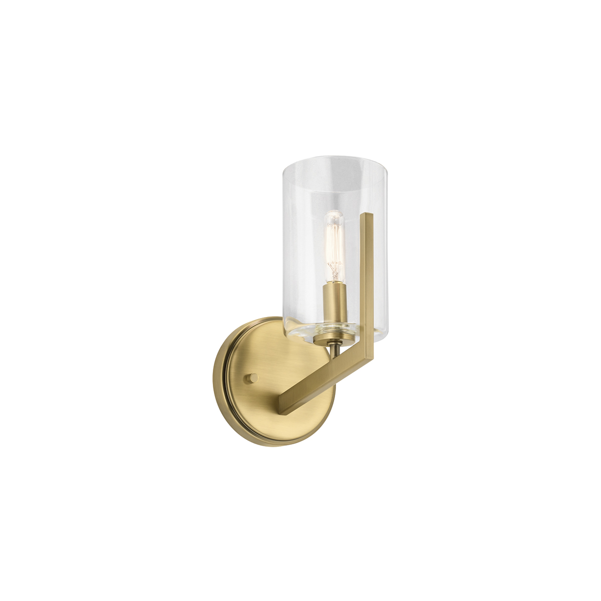 Бра Elstead Lighting QN-NYE1-BNB. Светильник выполнен в стиле mid-century modern. Изюминкой является цилиндрический плафон из прозрачного стекла. Идеально подходит для современной обстановки и для интерьеров в переходном стиле. Рекомендуем сочетать с лампами в индустриальном стиле. Основание в отделке - Матовая латунь. Идеально подойдет для освещения гостинной, кабинета, кухни, прихожей, спальни, столовой.