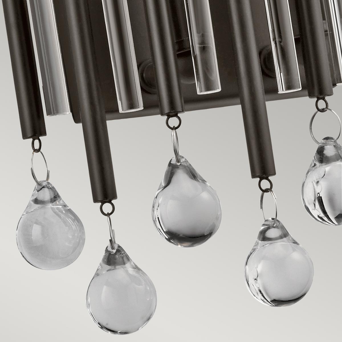 Бра Elstead Lighting KL-PIPER2. Соединяет в себе современность и женственность, благодаря акцентам из изящных, стеклянных бусин. Светильник изготавливается из чередующихся деталей, выполненных из прозрачного стекла, и металлических стержней. Благодаря этому он привлекает внимание и становится центром любого современного помещения. Основание выполнено в цвете - Темная бронза.