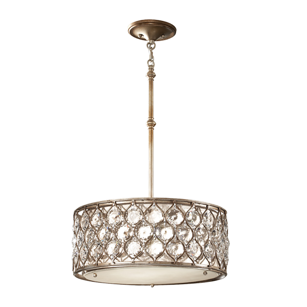 Подвесной светильник Elstead Lighting FE-LUCIA-B. Прекрасный светильник представляет собой многочисленные кристаллы огранки bauhinia (форма подсолнуха) в обрамлении металлического каркаса. Как только вы включаете эту лампу, она буквально оживает. Выполнен в современном стиле и одновременно ошеломляющем и многогранном дизайне. Светильник оснащен льняным абажуром и элегантным стеклянным рассеивателем, который добавляет роскошь, но в то же время смягчает дизайн изделий. Основание выполнено в отделке - Сусальное серебро. Можно использовать при освещении гостинной, кабинета, кухни, прихожей, спальни, столовой. Стержни 4х300 мм и 2х150 мм в комплекте