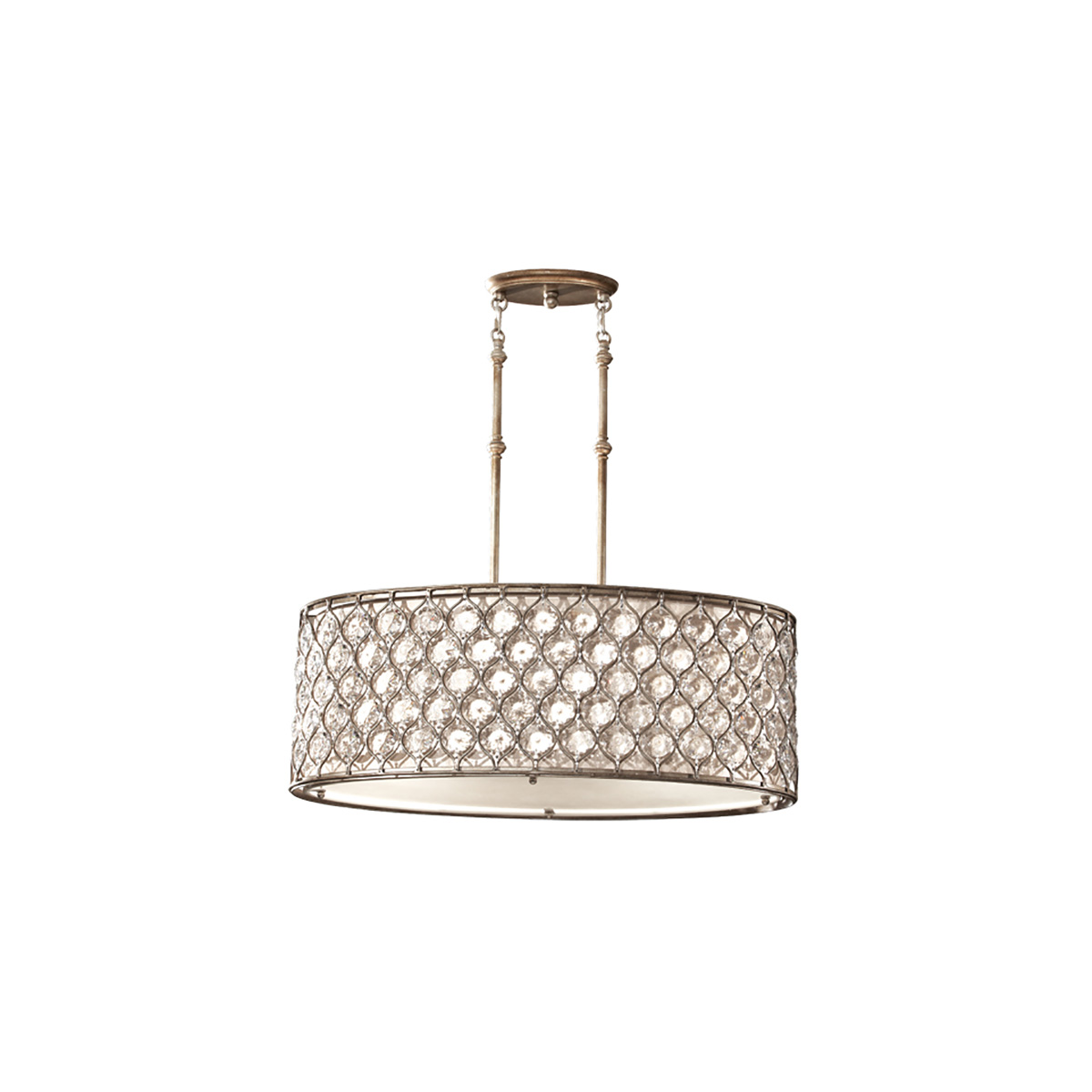 Подвесной светильник Elstead Lighting FE-LUCIA-P-A. Прекрасный светильник представляет собой многочисленные кристаллы огранки bauhinia (форма подсолнуха) в обрамлении металлического каркаса. Как только вы включаете эту лампу, она буквально оживает. Выполнен в современном стиле и одновременно ошеломляющем и многогранном дизайне. Светильник оснащен льняным абажуром и элегантным стеклянным рассеивателем, который добавляет роскошь, но в то же время смягчает дизайн изделий. Основание выполнено в отделке - Сусальное серебро. Можно использовать при освещении гостинной, кабинета, кухни, прихожей, спальни, столовой. Стержни 6х300 мм в комплекте