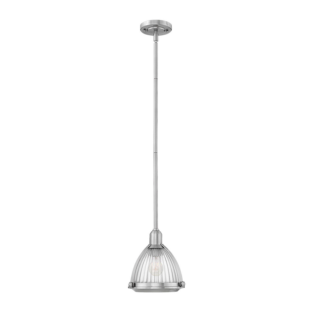 Подвесной светильник Elstead Lighting QN-ELROY-BN. Фактурное граненое стекло. Крепления в винтажном стиле. Основание в отделке - Матовый никель. Можно использовать при освещении гостинной, кабинета, кухни, прихожей, спальни, столовой. Поставляется со стержнями 2x305 мм и 1x153 мм
