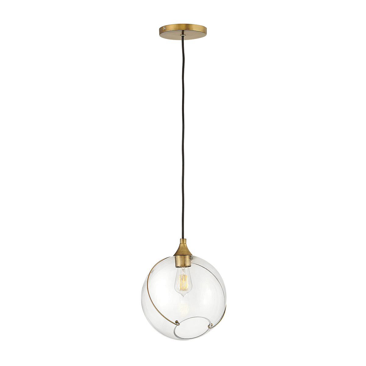 Подвесной светильник Elstead Lighting QN-SKYE-1P. Завораживающая асимметрия форм и явное влияние модерна середины хх века. Прозрачный шар с отверстием, опоясанный тонким латунным кольцом. Отверстие в шаре смещено от центра. Детали отлично завершают комбинацию. Рекомендуем сочетать с индустриальными лампами. Основание выполнено в цвете - Латунь. Можно использовать при освещении гостинной, кабинета, кухни, прихожей, спальни, столовой. Поставляется со стержнями 2х305 мм и 1х152 мм
