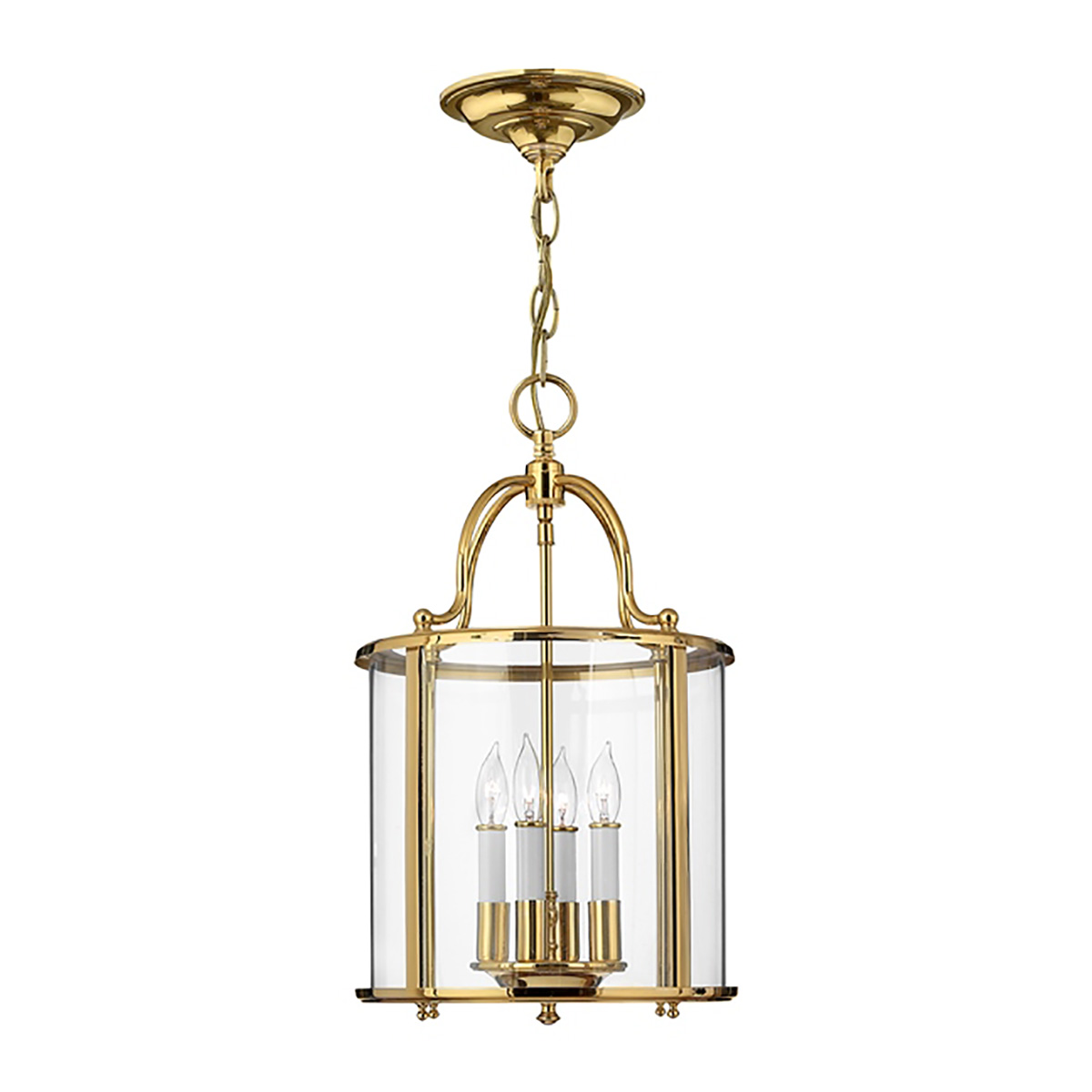 Подвесной светильник Elstead Lighting HK-GENTRY-P-M-PB. Светильник выполнен в традиционном стиле, сдержанном и элегантном. Прозрачные стеклянные панели, придают светильнику воздушность, ощущение которой усиливается благодаря тонким округлым линиям креплений и абажура. Лампочки ввинчены в колбы, имитирующие настоящие свечи. Романтика, легкость и чуточку ностальгии. Основание в отделке - Латунь. Подходит для освещения гостинной, кабинета, кухни, прихожей, спальни, столовой. Цепь 1524 мм в комплекте