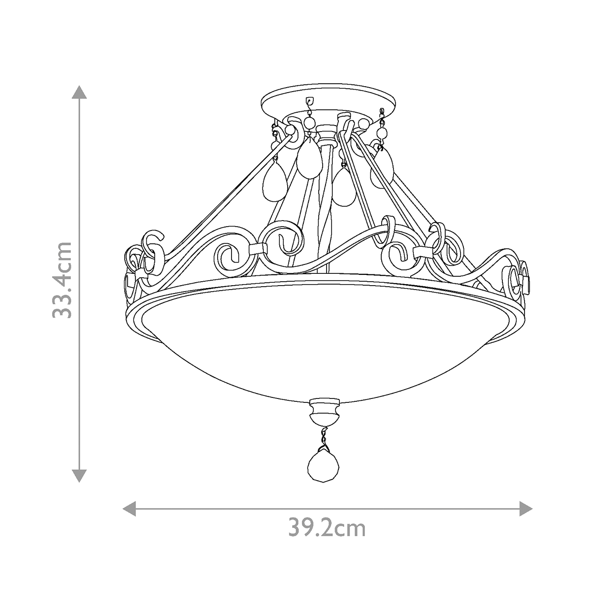Потолочный светильник Elstead Lighting FE-CHATEAU-SF. Вдохновлено архитектурой великих замков на юге франции. Завитки из трубочек квадратного сечения создают лирическое настроение и гармонируют друг с другом. Подвески из оптического стекла. Основание выполнено в отделке - Бронза. Подходит для освещения гостинной, кабинета, кухни, прихожей, спальни, столовой, детской.