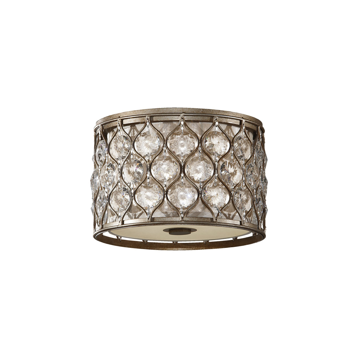 Потолочный светильник Elstead Lighting FE-LUCIA-F. Прекрасный светильник представляет собой многочисленные кристаллы огранки bauhinia (форма подсолнуха) в обрамлении металлического каркаса. Как только вы включаете эту лампу, она буквально оживает. Выполнен в современном стиле и одновременно ошеломляющем и многогранном дизайне. Светильник оснащен льняным абажуром и элегантным стеклянным рассеивателем, который добавляет роскошь, но в то же время смягчает дизайн изделий. Основание в цвете - Сусальное серебро. Можно использовать при освещении гостинной, кабинета, кухни, прихожей, спальни, столовой, детской.