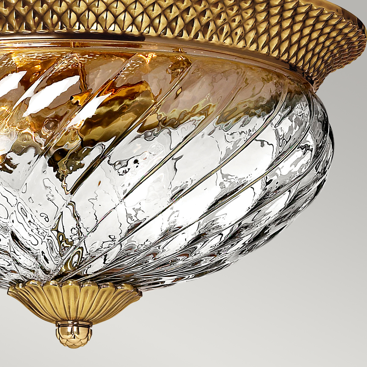 Потолочный светильник Elstead Lighting HK-PLANTATION-FL-BB. Светильник украшен необычным плафоном, изготовленным из чистого оптического стекла. . Основание в отделке - Полированная латунь. Идеально подойдет для освещения гостинной, кабинета, кухни, прихожей, спальни, столовой, детской.
