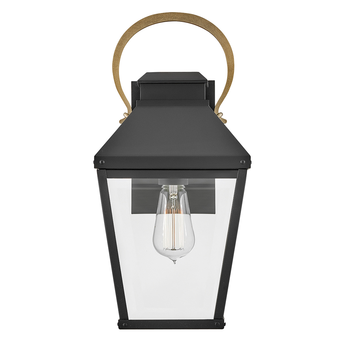 Настенный фонарь Hinkley HK-DAWSON-M из коллекции DAWSON. Основание выполнено в черной с полированной бронзой отделке. Настенный светильник для улицы с защитой IP44. Рекомендуем для дизайна в классическом стиле