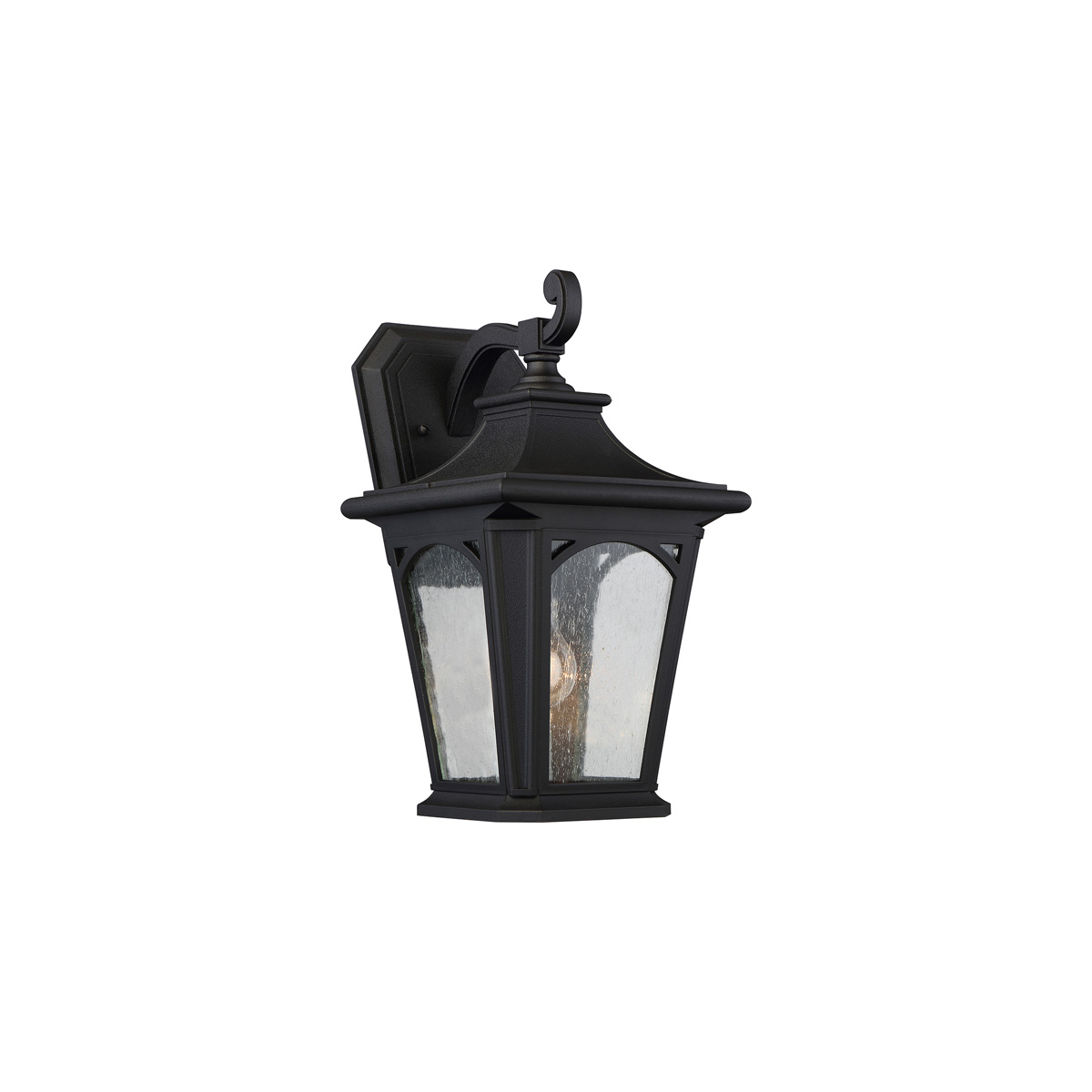 Настенный фонарь Elstead Lighting QZ-BEDFORD2-M. Классический светильник для универсального фотормления уличного освещения. Прозрачное фактурное стекло привносит ощущение старины и превосходно сочетается с отделкой «черный». Светильник сделан из специального материала, созданого, чтобы выдерживать экстремальную жару и жестокий холод. Имеет пятилетнюю гарантию. Степень защиты IP44.
