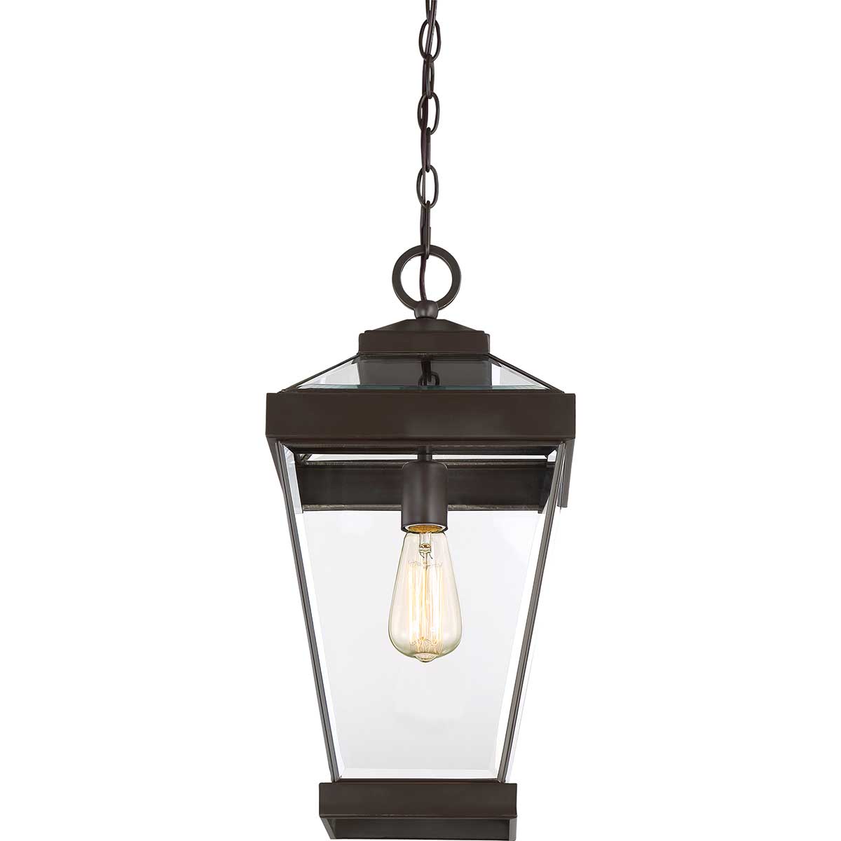 Потолочный фонарь Elstead Lighting QZ-RAVINE8-L. Светильник выполнен в оригинальном стиле с использованием минималистичных элементов. Богатая отделка «западная бронза», в которой выполнен каркас, контрастирует с прозрачными стеклянными панелями, сходящимися в верхней и нижней частях фонаря. Обратите внимание на то, что винтажная лампа не входит в комплект и продается отдельно. Можно использовать при уличном освещении, степень защиты IP44. Поставляется с цепью длиной 2438 мм