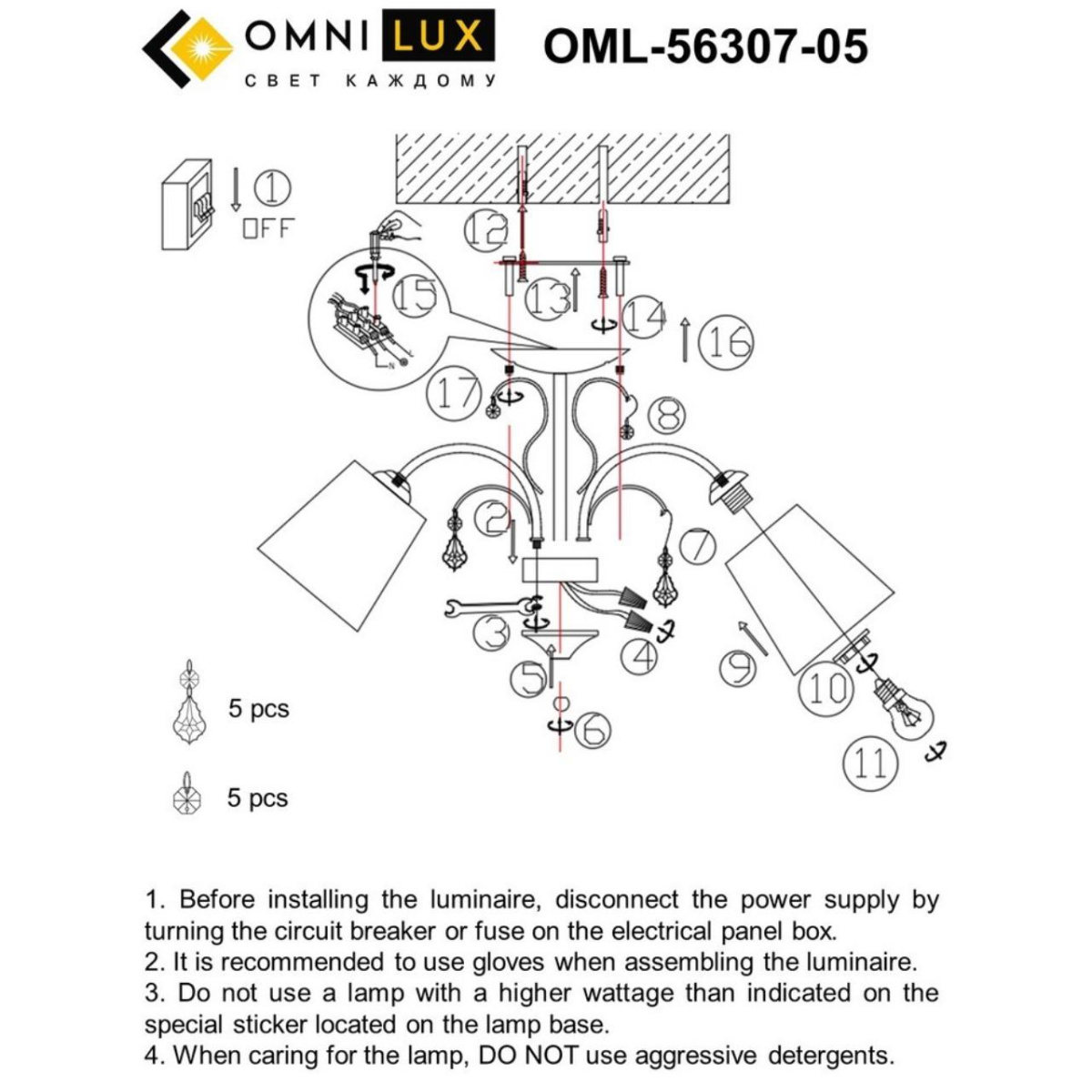 Количество ламп, шт. 5