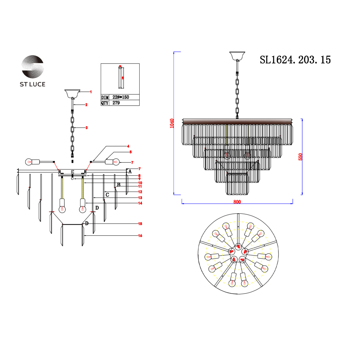 SL1624.203.15 Люстра подвесная ST-Luce шампань/прозрачный E14 15*40W ERCOLANO