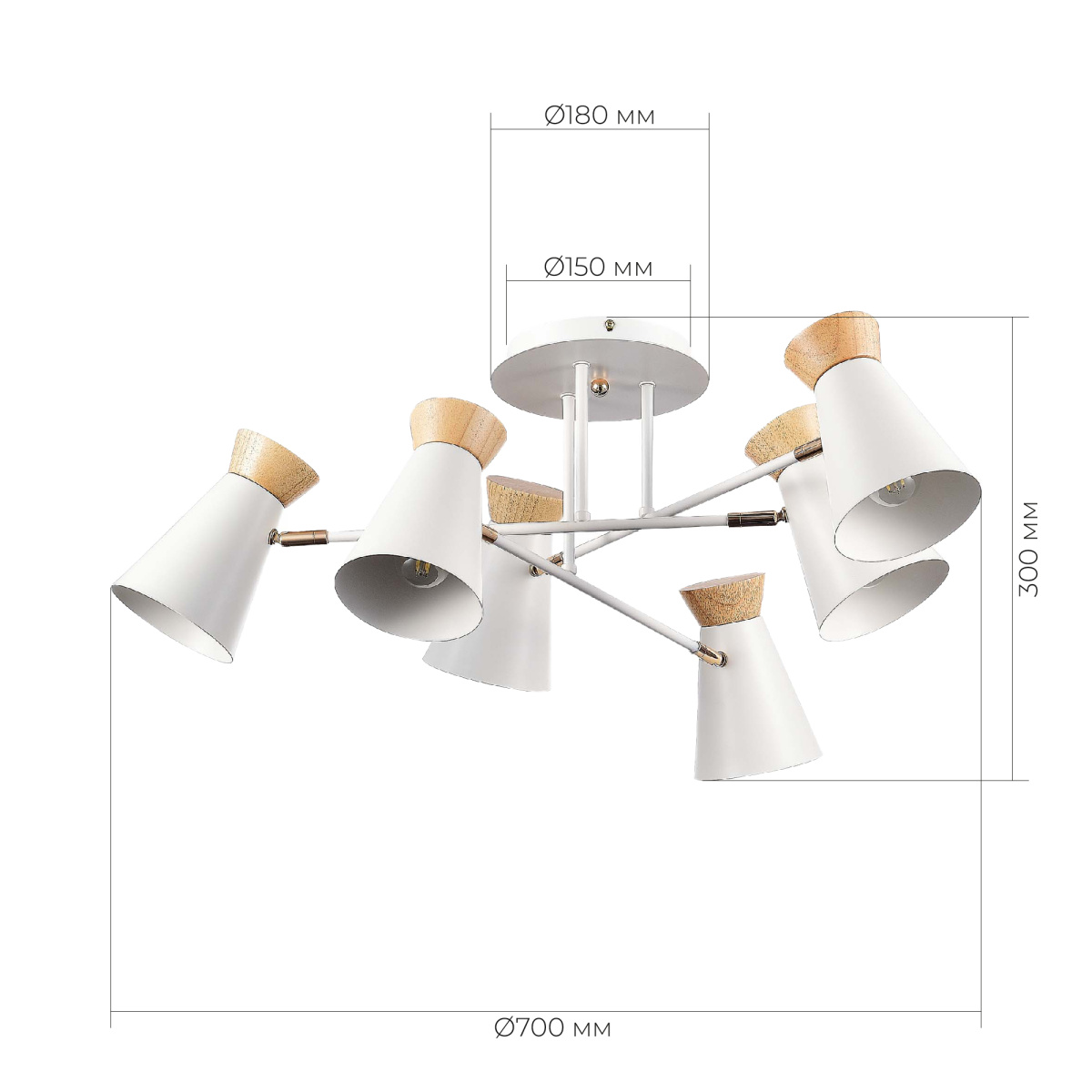SLE1252-502-06 Светильник потолочный Белый, Золотистый/Белый, Дерево E27 6*60W ALFEO