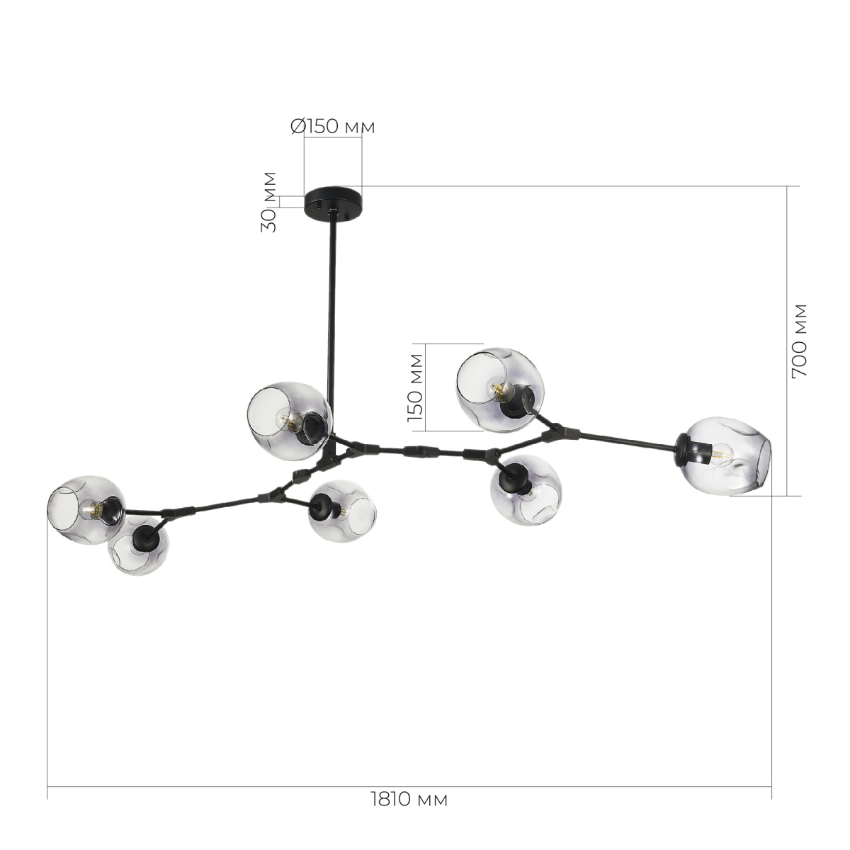SLE154843-07 Светильник подвесной Черный/Дымчатый E27 7*40W RAMETTO