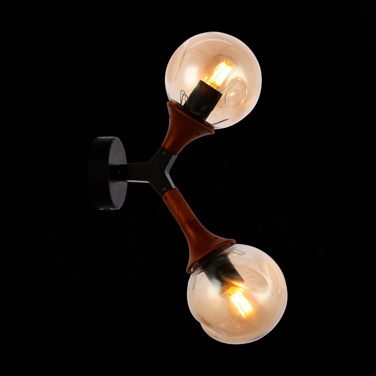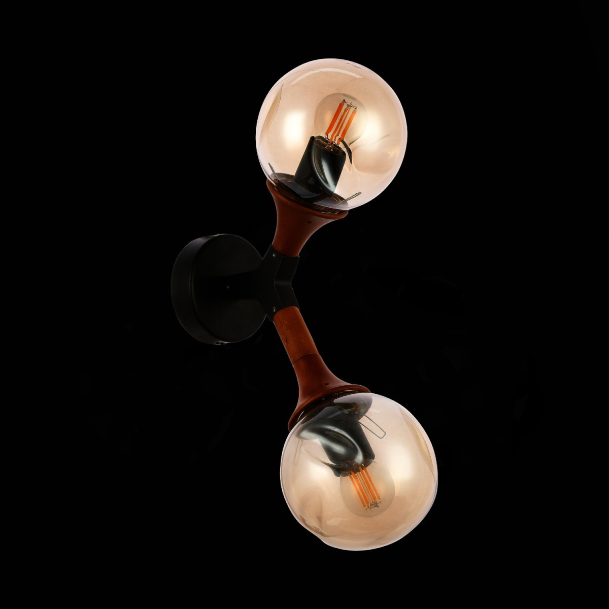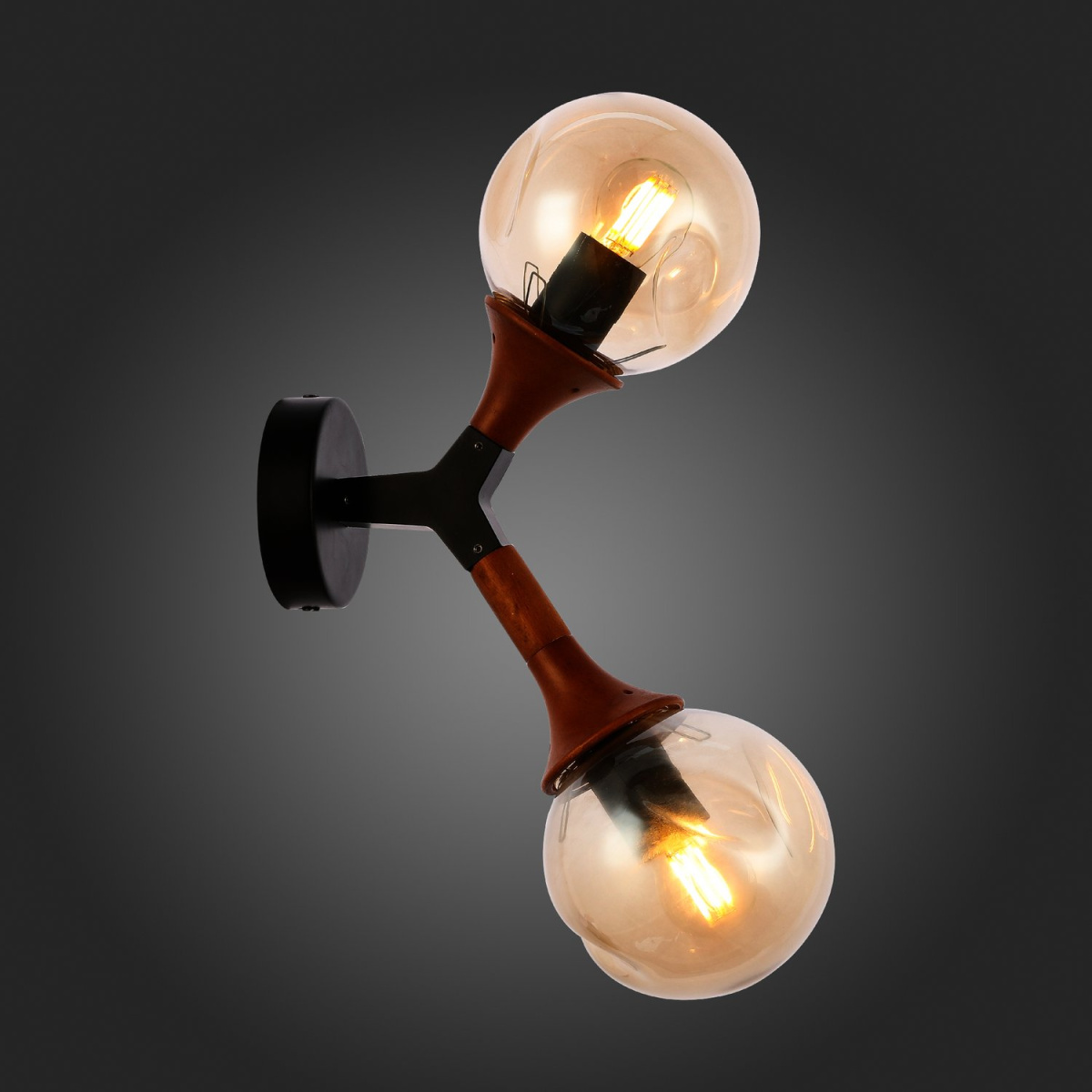 SLE109401-01 Светильник настенный Черный, Темное дерево/Прозрачный, Янтарный E27 2*60W RAQUEL