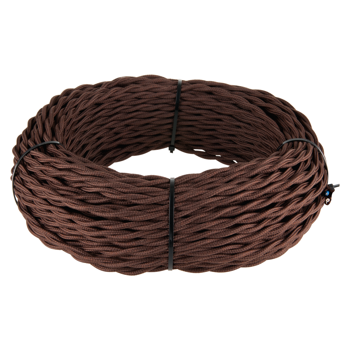 Ретро кабель витой 3х1,5 коричневый 50 м. Многожильный медный провод обеспечивает гибкость кабеля и его высокие электротехнические характеристики. Наружная оплетка кабеля имитирует натуральный шелк.