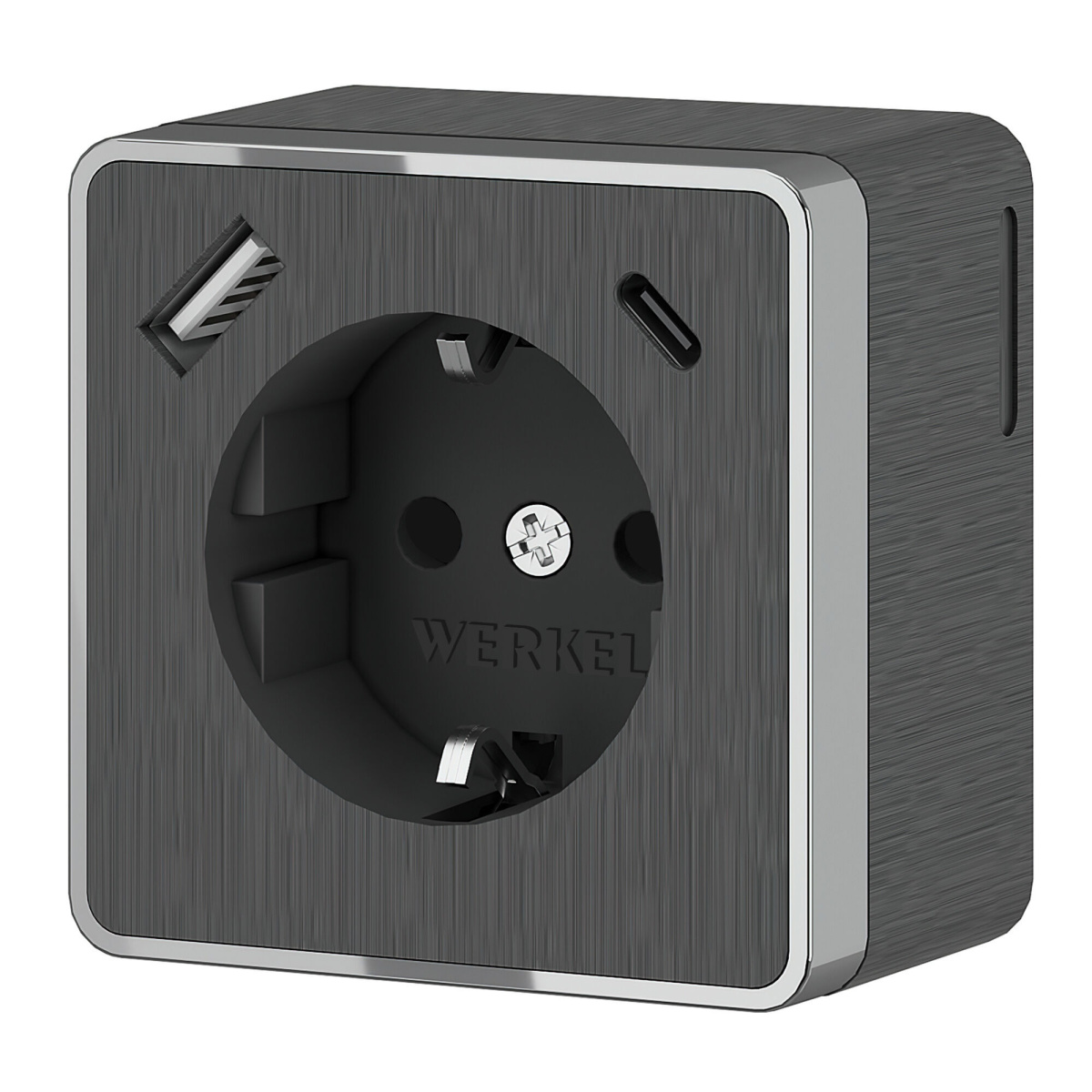 Розетка с заземлением, шторками и USB тип A+C Gallant графит рифленый W5071704
