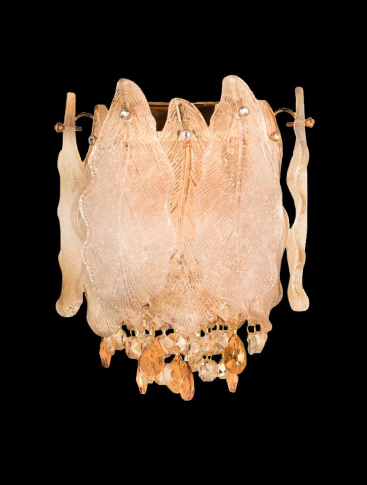 Подвесы люстр изготовлены из стекла самого высокого качества и прозрачного хрусталя. Вкрапления из тонированного хрусталя янтарного цвета создают эффект теплых, медовых бликов.