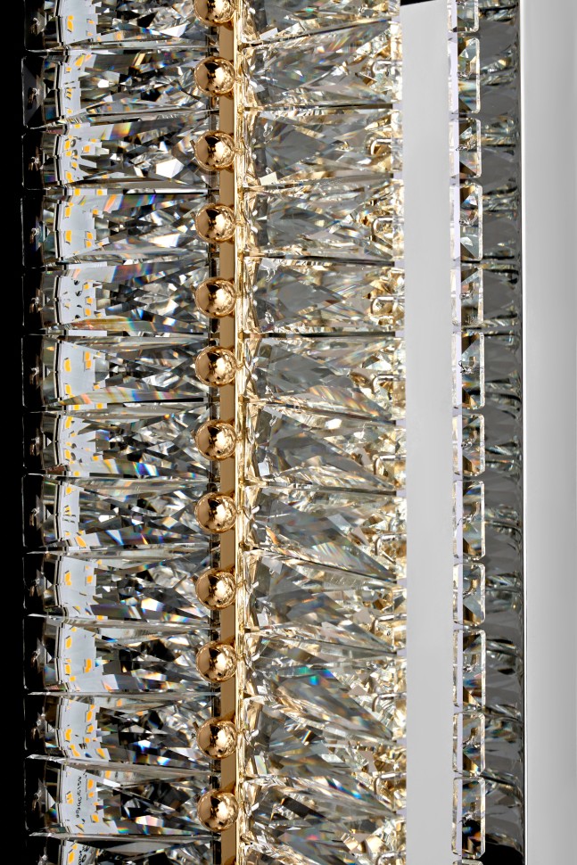 В коллекции Sacrement представлены люстры разного диаметра и формы — от аккуратных моделей для спальни до масштабных композиций для просторной гостиной или зала, а также бра из хрусталя в двух размерах, которые продолжат образ и добавят симметрии интерьеру.