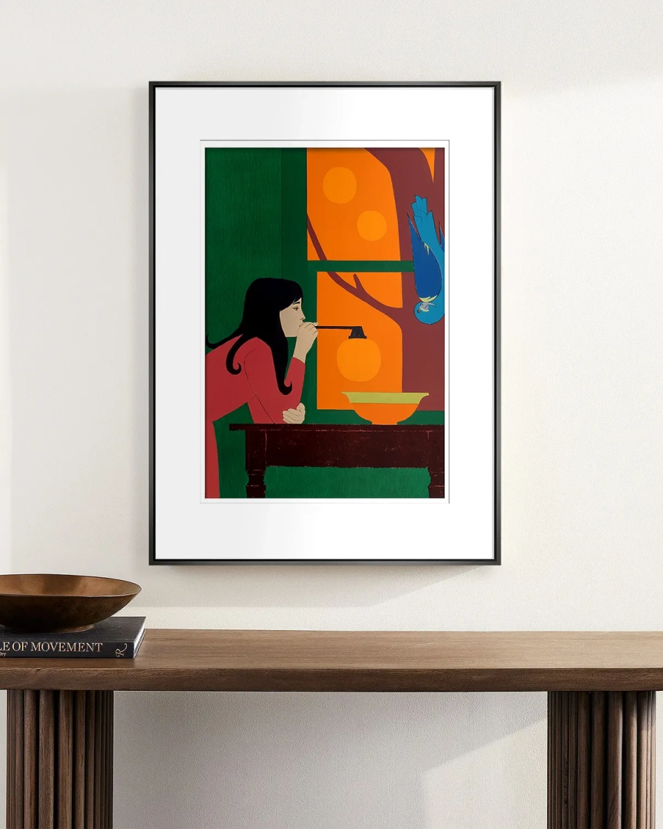 Интерьерное жикле “Summer” – это воспроизведение одной из картины [su_tooltip title="Уилл Барнет" text="Уилл Барнет (25 мая 1911 – 13 ноября 2012) был американским художником, известным своими картинами, акварелями, рисунками и гравюрами, изображающими человеческие фигуры и животных как в случайных сценах повседневной жизни, так и в трансцендентных сказочных мирах." background="#424242" color="#ffffff" font_size="12"]Уилла Барнета[/su_tooltip]. На ней изображен портрет женщины и попугая в прекрасно иллюстрированном интерьере. Эта одна картина из его серии "Silent Seasons", состоящей из четырех принтов для каждого сезона, посвящен лету, поэтому за окном отражается жаркое солнце, а женщина пускает мыльные пузыри. Уилл Барнет использует темную палитру и монохромный фон для придания своим героям атмосферы загадочности и тайны. Фигуры людей, запечатленных на картине, выглядят элегантными и изящными, смешиваясь с цветными блоками в приглушенных пейзажах и интерьерах. Интерьерное жикле “Summer” – это идеальный выбор для преобразования вашего дома или офиса. Картина станет прекрасным украшением стены и привнесет элегантность и неповторимый стиль в интерьер. Ее яркие цвета и прекрасные детали позволят создать уютную и живописную атмосферу в любом помещении. Этот принт также является прекрасным подарком для любителей искусства.