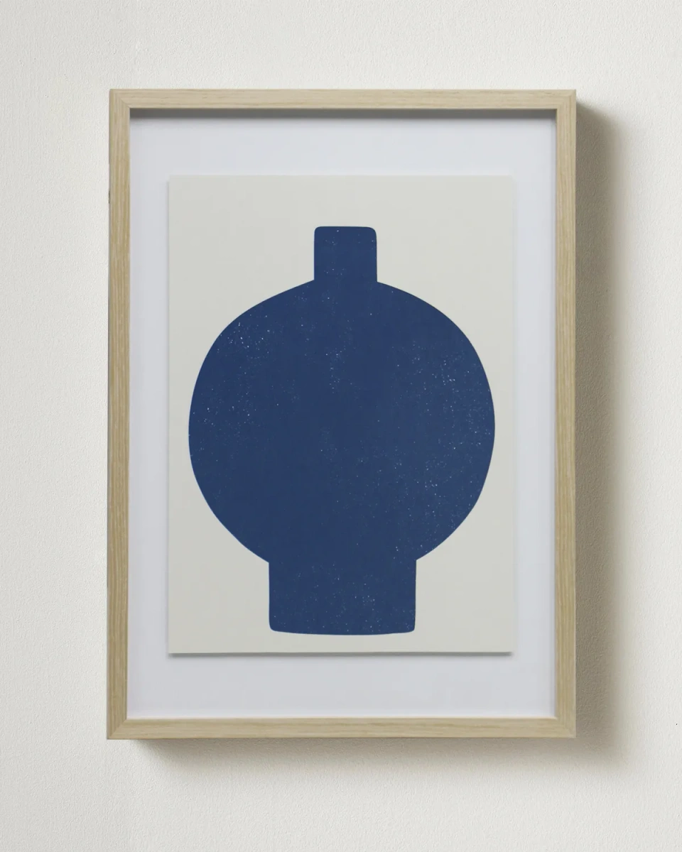 Интерьерный постер "Ceramic Vase - III" - это минималистичное произведение с изображением стилизованной формы, напоминающей вазу. Основной цвет — глубокий темно-синий, который контрастирует с светлым фоном. Форма имеет округлые линии и плавные контуры, что придает ей гармоничный вид. Использование простых геометрических форм и ограниченной палитры создает ощущение спокойствия и уюта, делая этот постер отличным выбором для интерьеров в современном или скандинавском стилях. Такой постер может стать акцентом в любой комнате, добавляя визуальный интерес без перегруженности. Он легко вписывается в различные декор-решения и может сочетаться с другими элементами интерьера.