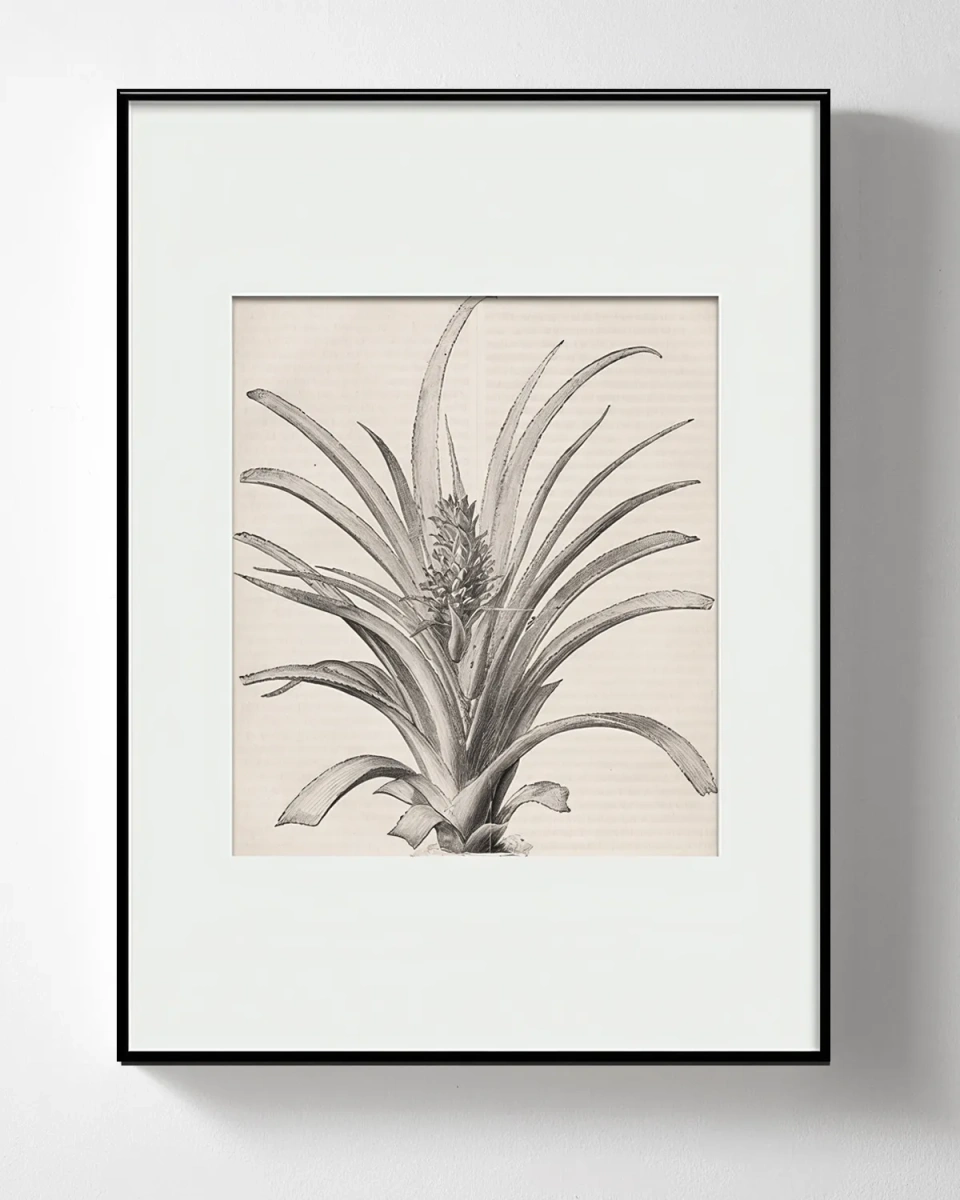 Интерьерный постер “Pineapple” – это копия эскиза, найденного на 17-ой странице Английского научно-популярного журнала "[su_tooltip title="Science-Gossip" text="Science-Gossip (1865-1893, 1894-1902) был популярным научным журналом, ориентированным на образованного читателя-неспециалиста. Его первым редактором был ботаник Мордехай Кьюбитт Кук, и журнал претендовал на роль «средства обмена и сплетен» относительно открытий, разработок и научного мира." background="#424242" color="#ffffff" font_size="12"]Science-gossip[/su_tooltip]" выпущенного в 1867 году. На этом эскизе изображена ананасовая гроздь, а также приложена заметка журнала, которая рассказывает о происхождении ананаса. Отмечается, что почти нет сомнений в том, что родиной этого фрукта была Америка, откуда он был завезен в восточную и южную Азию. Важно отметить, что во времена правления Оливера Кромвеля, ананасы являлись одним из подарков, которые он получил, и, вероятно, это было первое введение этого фрукта в Англию. Размеры этого интерьерного жикле позволяют легко вписать его в различные пространства вашего дома или офиса. Он может служить прекрасным украшением для стен в гостиной, спальне, кабинете или в обеденной зоне, добавляя ноту ботанической эстетики и стиля.