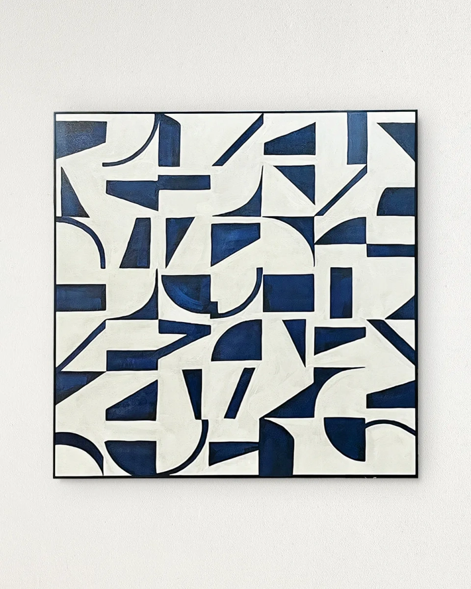 Картина в чёрной раме "Мейз" - это произведение абстрактного искусства, выполненное в стиле "Кубизм" состоящее из различных форм в тёмно-синем цвете, который придаёт ему особую атмосферу и выразительность. Сочетание глубокого синего оттенка и извилистых линий, закрученных в непредсказуемую симметрию, создают ощущение гармонии и в то же время игры, вызывая интерес. Эта картина станет стильным дополнением к любому интерьеру и впишется в современные жилые помещения или офис.
