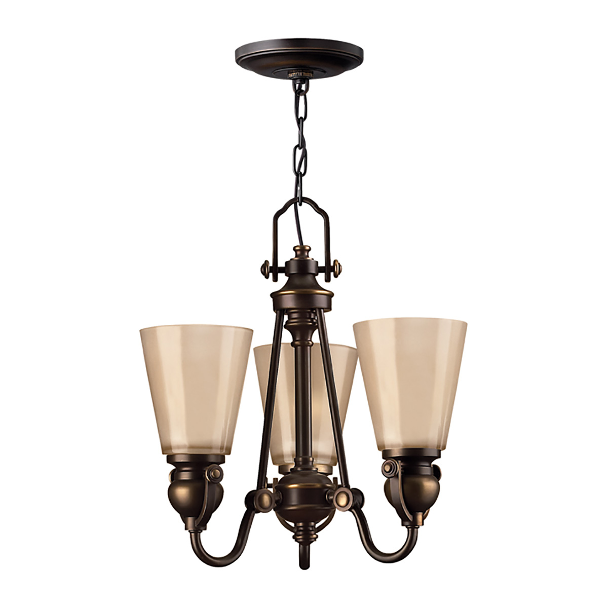 Люстра Elstead Lighting HK-MAYFLOWER3. Светильник, выполненный в традиционном дизайне с блестящей отделкой корпуса под бронзу (olde bronze). Оригинальная y-образная опора держателей и литые декоративные элементы придают светильнику своеобразный, самобытный стиль. Травленные изнутри плафоны из янтарного стекла. Подходит для освещения гостинной, кухни, спальни, столовой. Цепь 1525 мм в комплекте