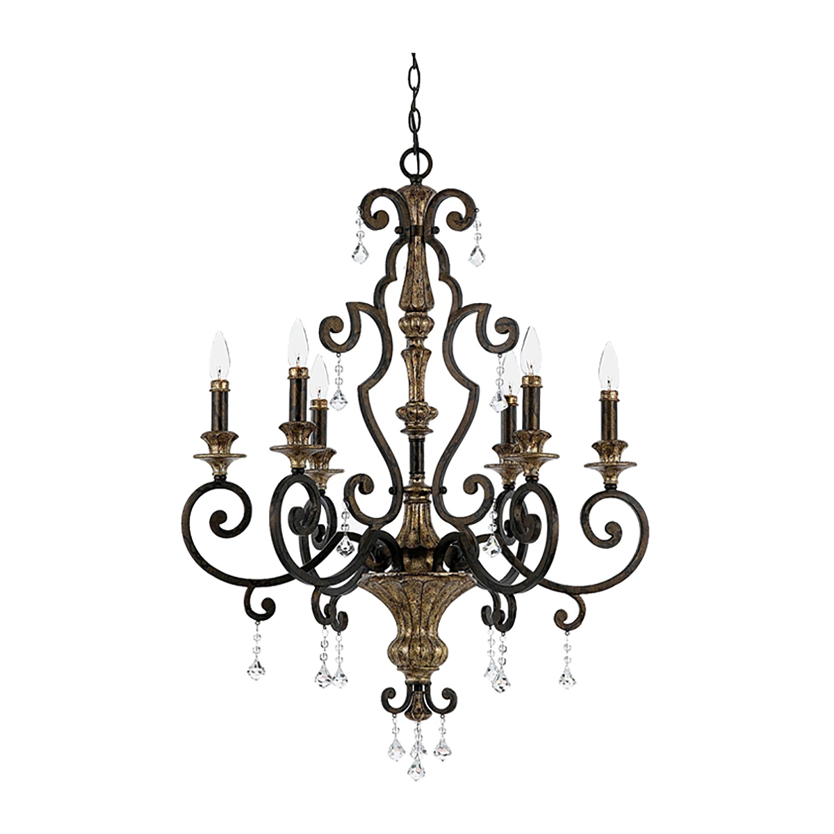 Люстра Elstead Lighting QZ-MARQUETTE6-A. Созданный с использованием многогранной кристаллической гирлянды — светильник романтичен как романтичен париж. Основание выполнено в цветах - Бронза, Золото. Можно использовать при освещении гостинной, кухни, спальни, столовой. Цепь 2438 мм в комплекте