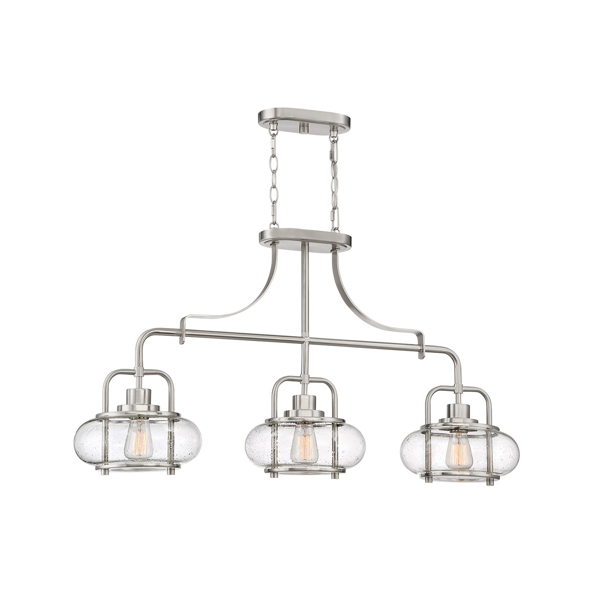 Люстра Elstead Lighting QZ-TRILOGY-ISLE-BN. Светильник особенно хорошо смотрится с винтажными лампами накаливания. Ностальгический, но в то же время шикарный дизайн с плафонами из прозрачного фактурного стекла. Коллекция привносит современную элегантность в стиль прошлых эпох. Основание выполнено в цвете - Матовый никель. Идеально подойдет для освещения гостинной, кухни, спальни, столовой. Цепь 1219 мм в комплекте