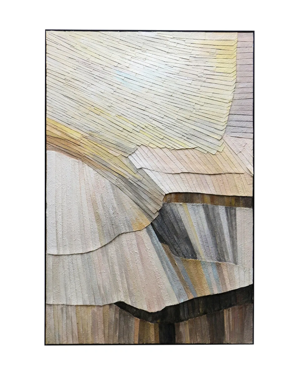 Рельефное интерьерное панно "Бутвал" - это настенный декор, выполненный в стиле абстрактного рельефа и вдохновлённый природной пластикой. Его волнообразная поверхность напоминает извилистые склоны гор, дюны пустыни или тектонические разломы, придавая пространству ощущение глубины и движения. Каждая линия на панно — это объемная полоска с уникальным наклоном и толщиной, создающая динамичную игру света и тени, будто солнечные лучи скользят по поверхности в разное время дня. Натуральная, приглушённая цветовая палитра включает мягкие бежевые, песочные, кремовые и серые тона, переходящие в насыщенные коричневые и чёрные акценты. Панно оформлено в тонкой чёрной раме, что делает его универсальным выбором для современных интерьеров — от минимализма и сканди до лофта и современной классики. Рельефное интерьерное панно "Бутвал" — это не просто декоративный элемент, а акцент, притягивающий взгляд и создающий атмосферу естественной гармонии в любом пространстве.