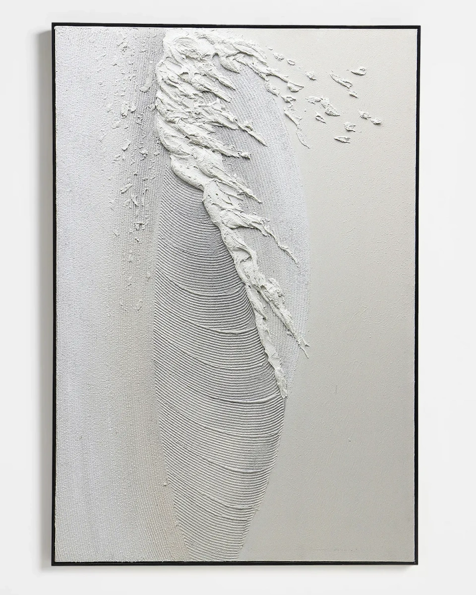 "Feather" - это абстрактная текстурная композиция. Оно выполнено в светлых тонах с элементами рельефного рисунка и объемными мазками. Панно сделано с использованием акриловой шпаклевки на холсте. Для создания рельефа применялись мастихины, кисти, специальные инструменты для текстурирования. В некоторых местах поверхность выглядит гладкой и равномерно прорисованной, а в других — хаотичной и фактурной, что добавляет динамику и глубину композиции. Панно отлично подходят для современных интерьеров в стиле минимализм, скандинавский, лофт или модерн.