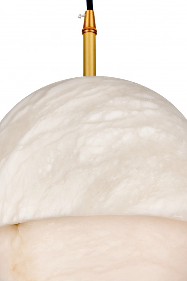Плафоны выполнены из испанского алебастра. Камень отличается высокой прочностью и способностью красиво пропускать свет. Корпус светильников – из латуни.